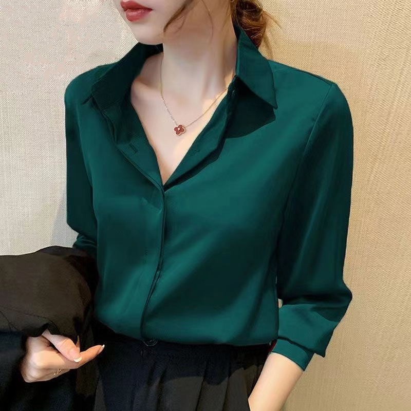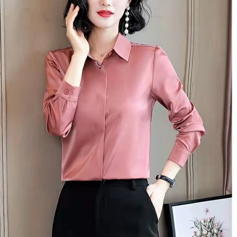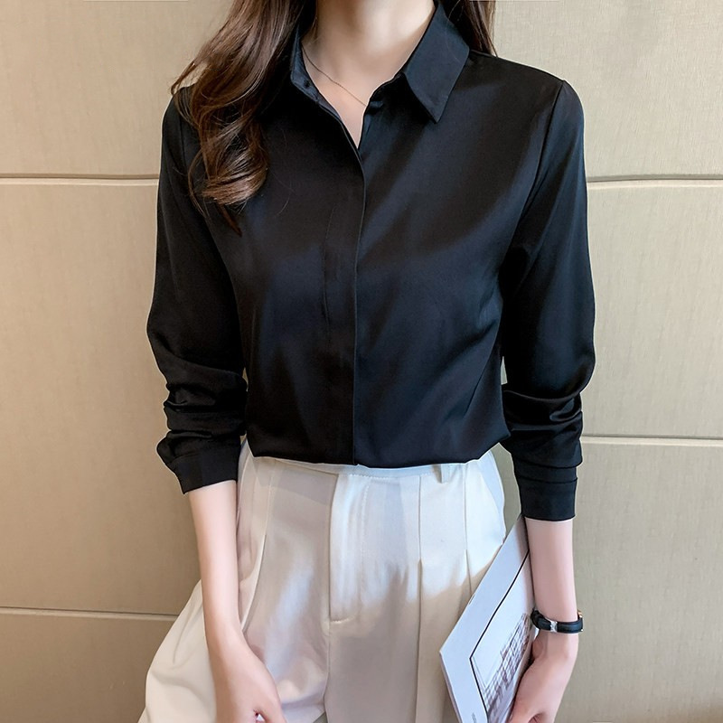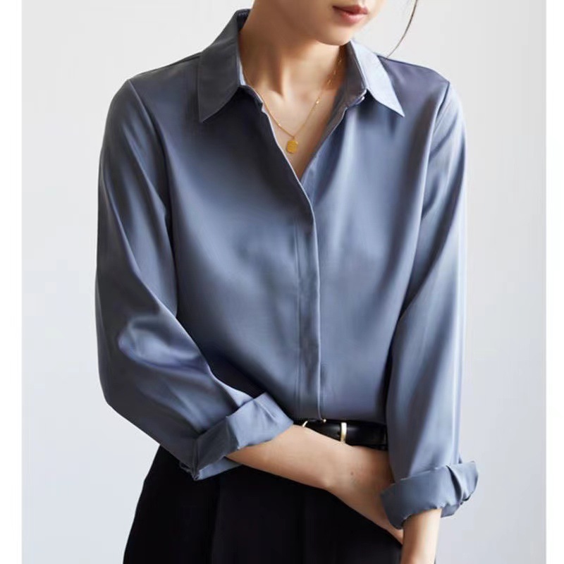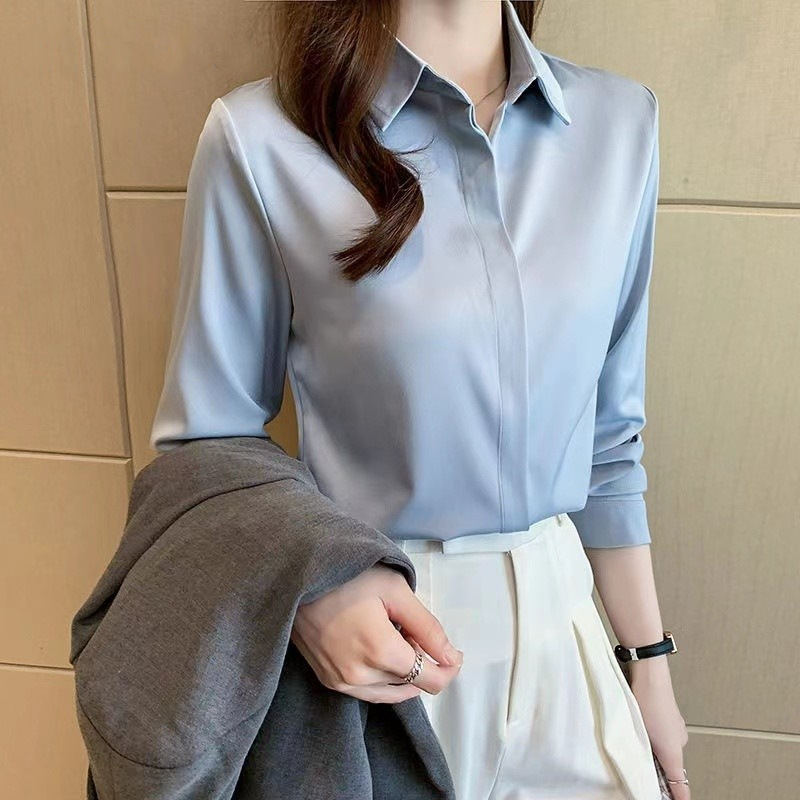 고급스러운 새틴 화이트 셔츠 블루 셔츠 여성용 신상 디자인 출퇴근 정장 다림질 필요 없는 상의스토어 가기