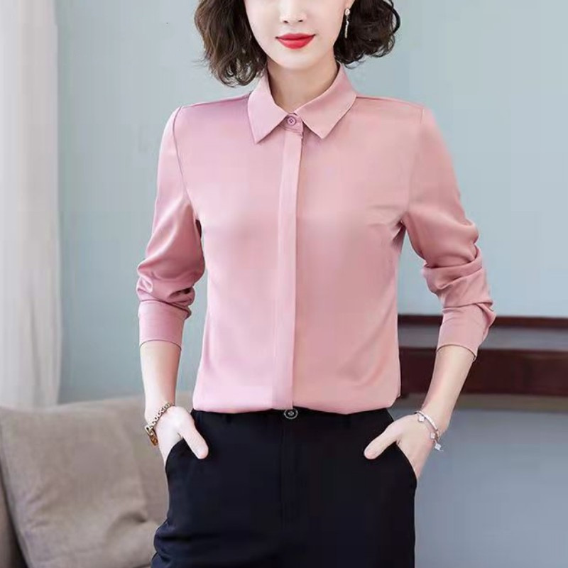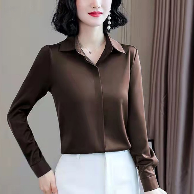 고급스러운 새틴 화이트 셔츠 블루 셔츠 여성용 신상 디자인 출퇴근 정장 다림질 필요 없는 상의