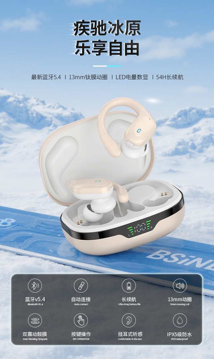 새로운 오리지널 개인 모델 스마트 디지털 소음 감소 스포츠 방수 귀걸이 무선 헤드셋 더블 마크 블루투스 헤드셋