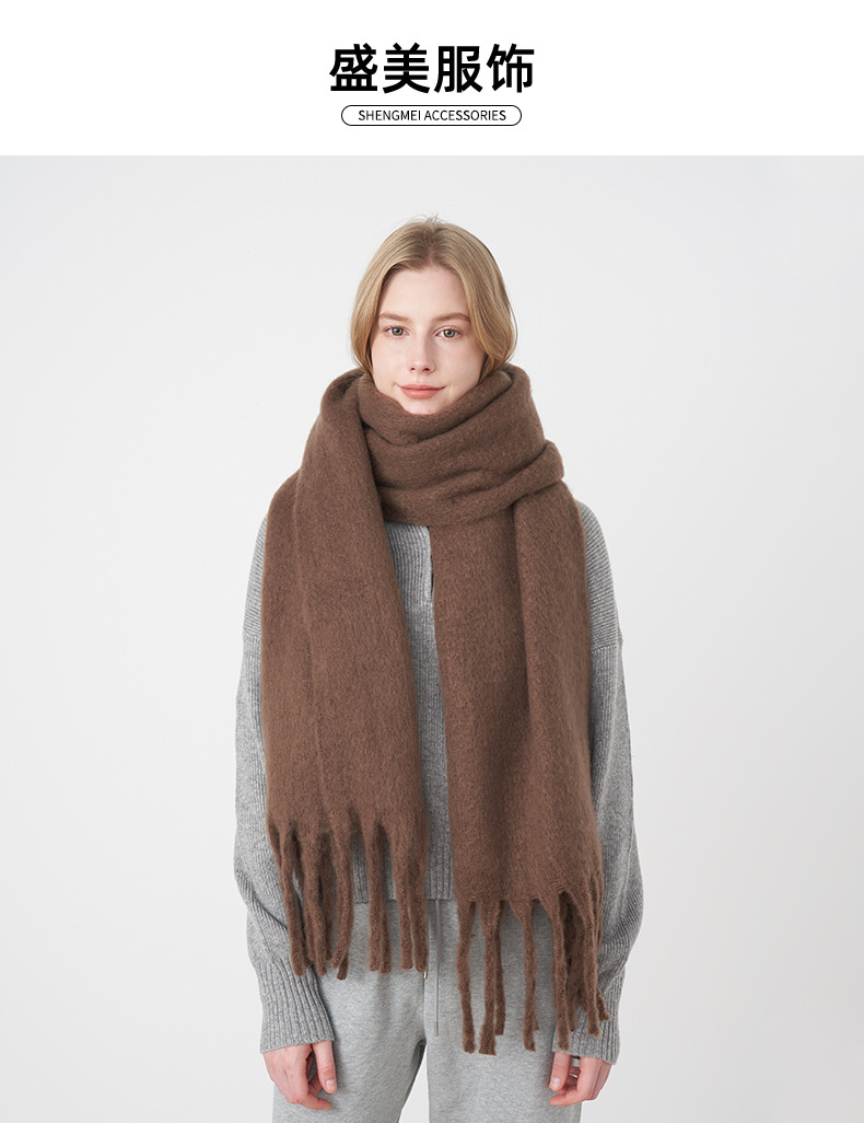 겨울 새로운 모헤어 캐시미어 단색 스카프 확장 두꺼운 술 가을과 겨울 따뜻한 스카프 도매스토어 가기