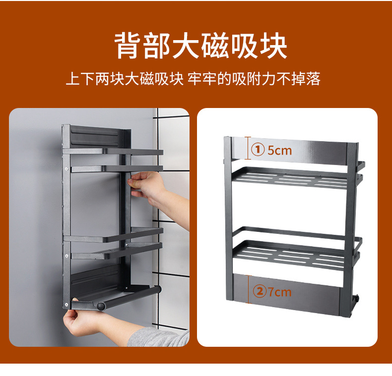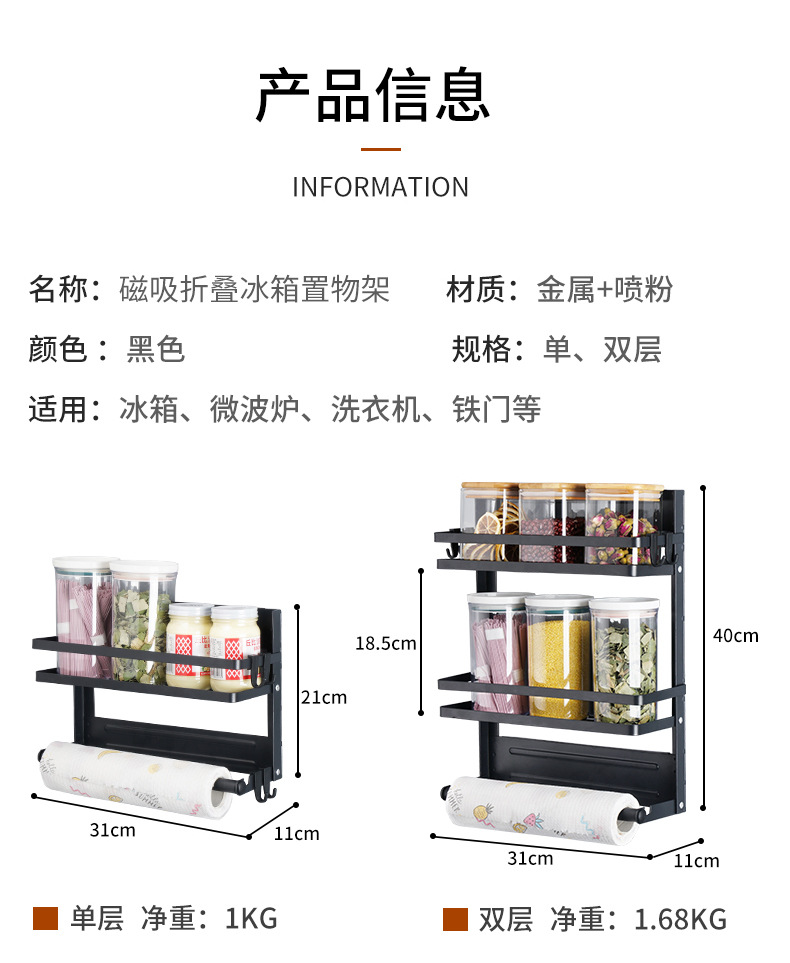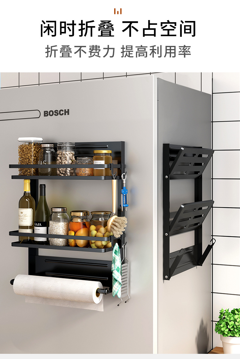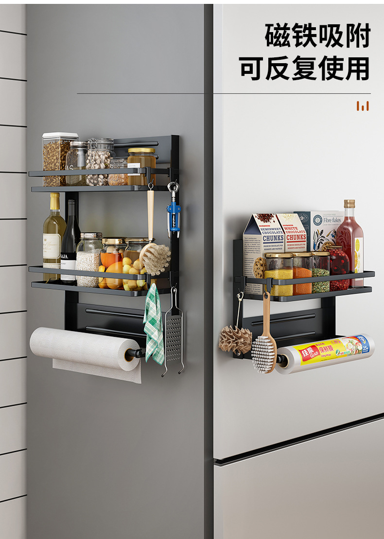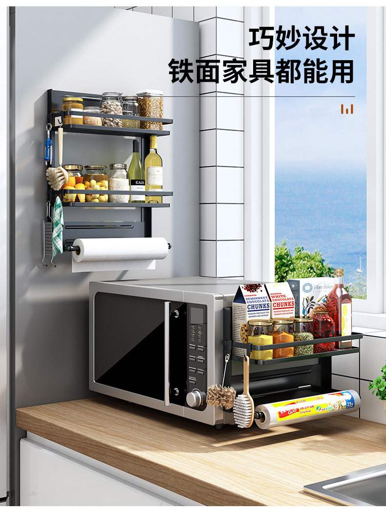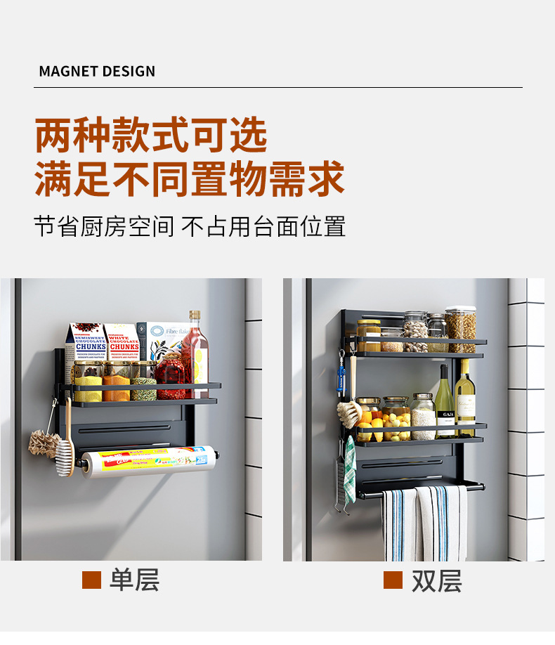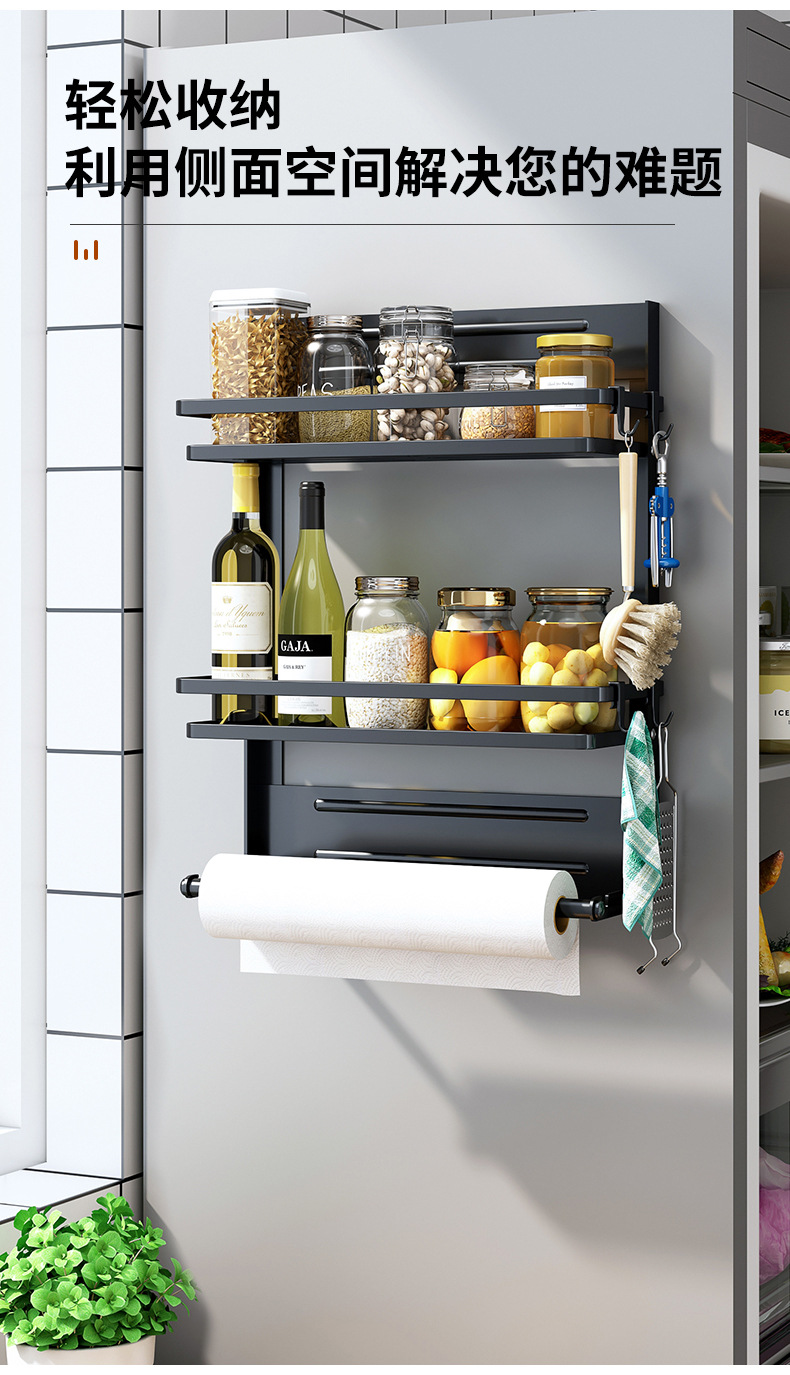 冰箱磁吸置物架,其选用碳钢材质生产,安全、耐用,箱规专供外贸跨境!也欢迎实体店批发!电商一件代发!源头工厂 品质可控 量大价优,物流运费、定制彩盒等详细请联系我们客服