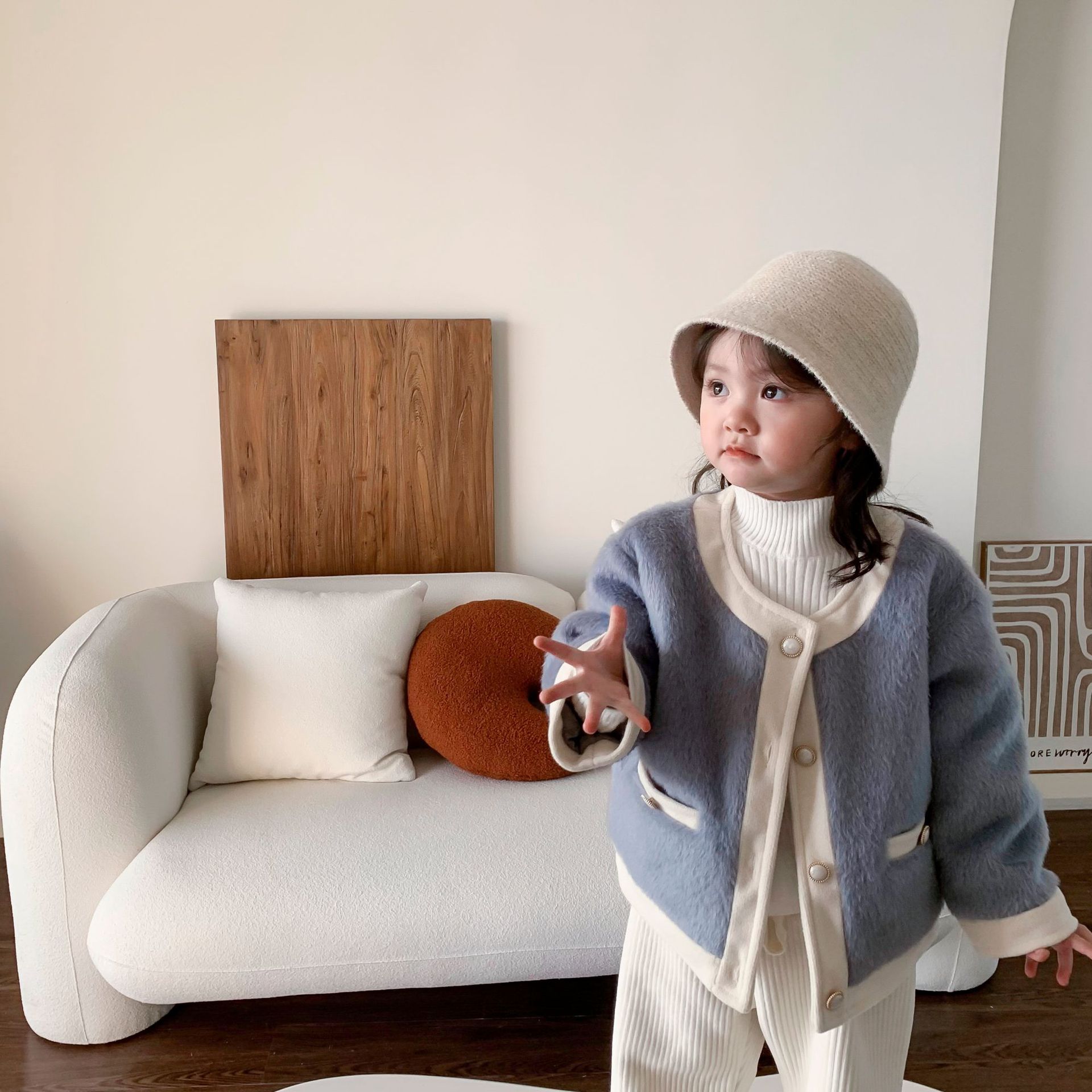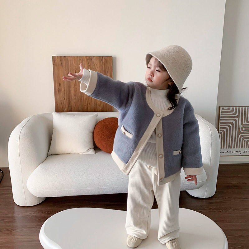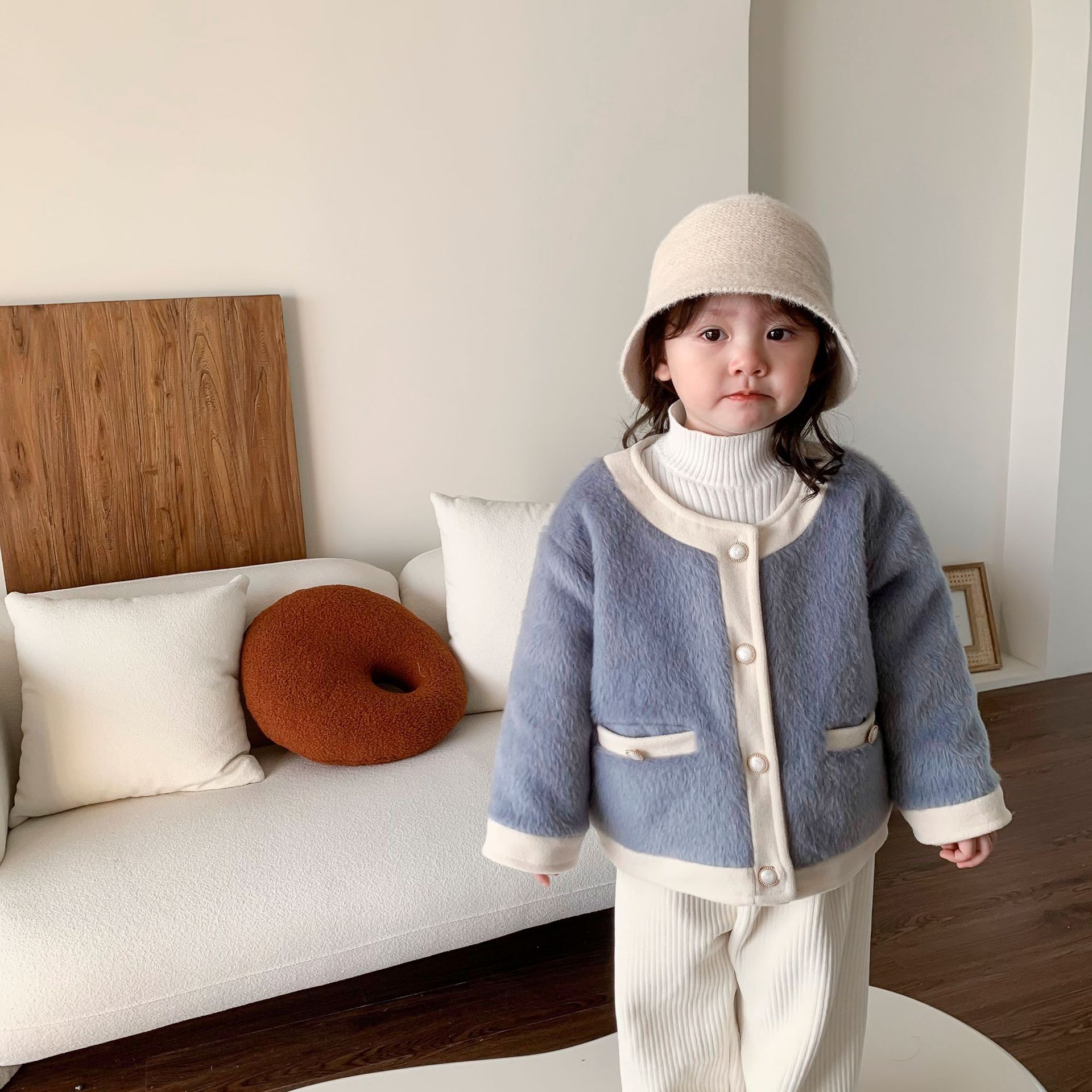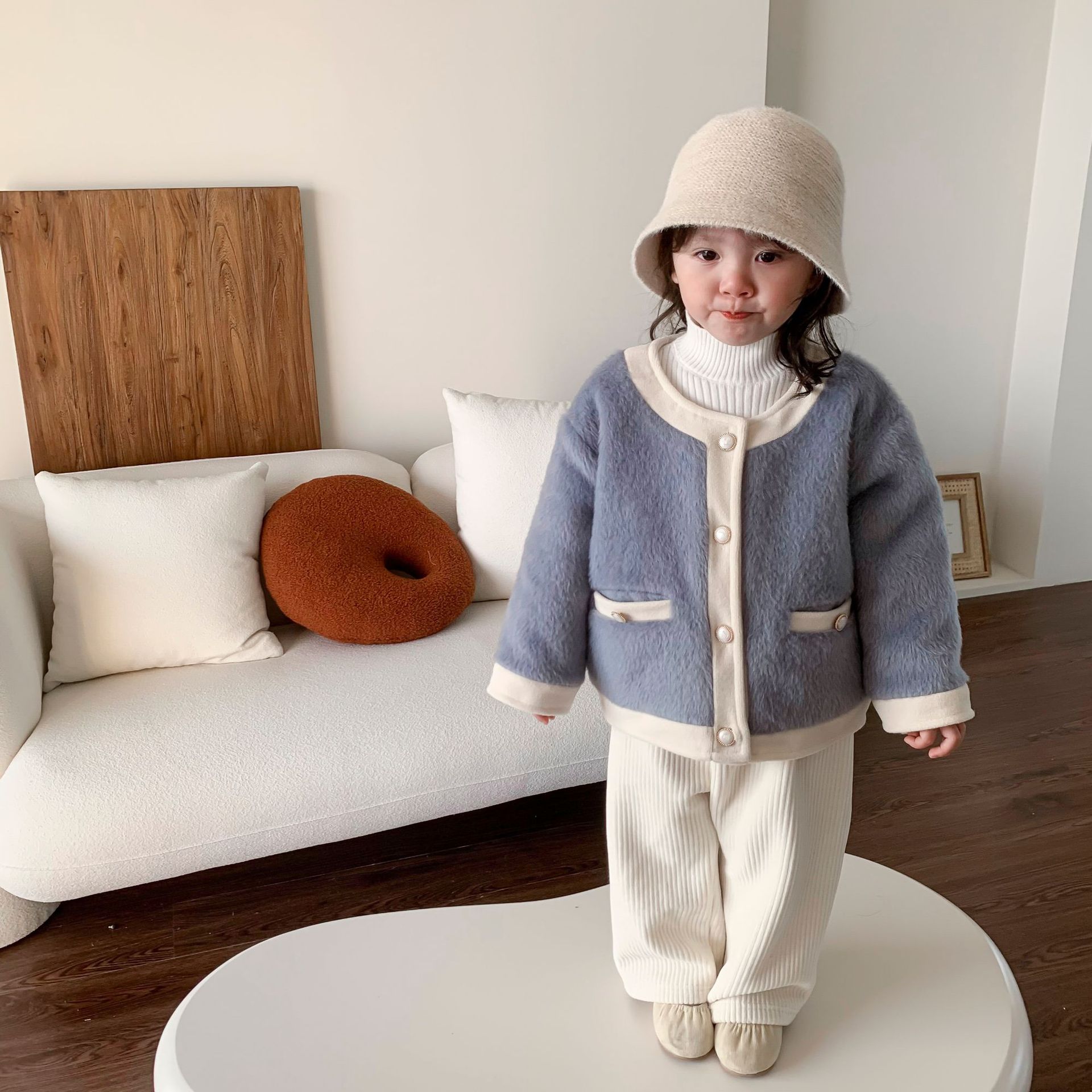 Weimu 아동 코트 봄과 겨울 소녀 단색 작은 향수 카디건 탑 아기 옷 한국 아동 의류 도매