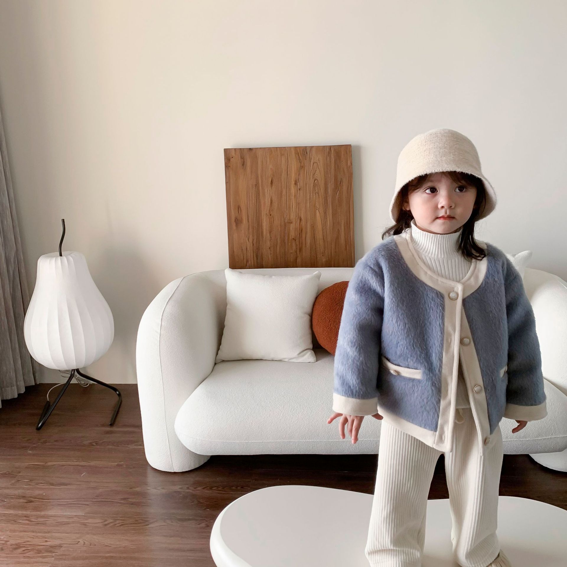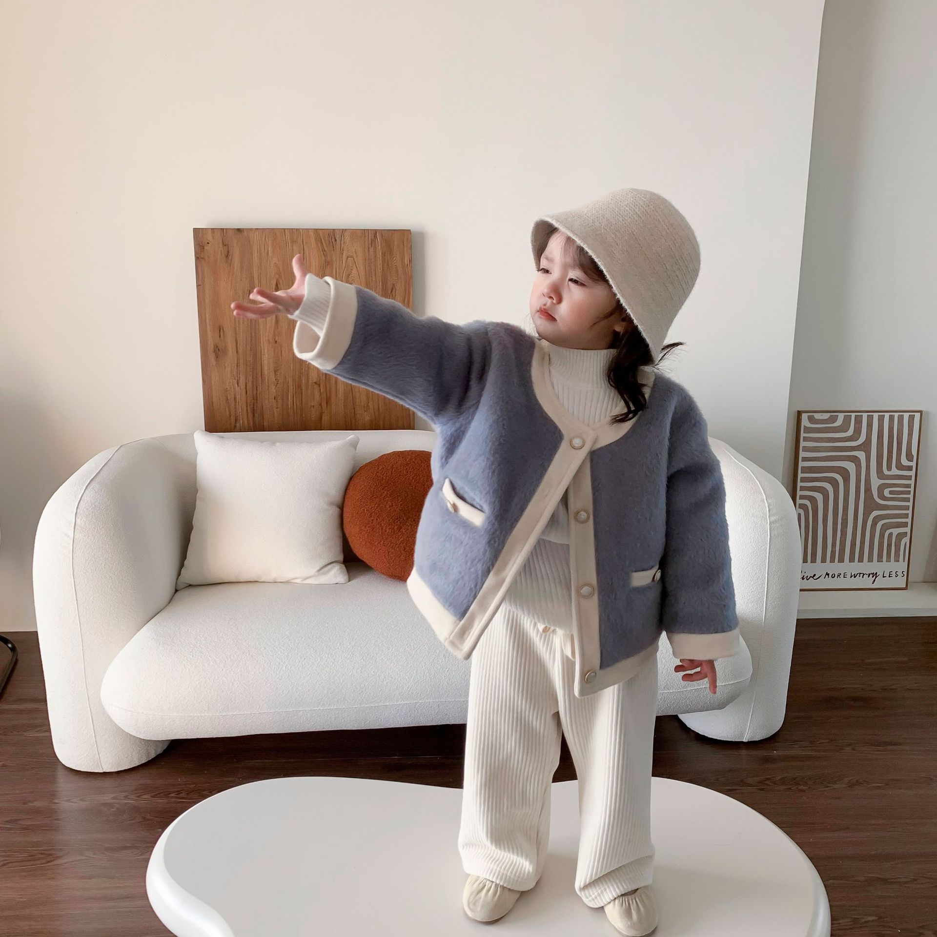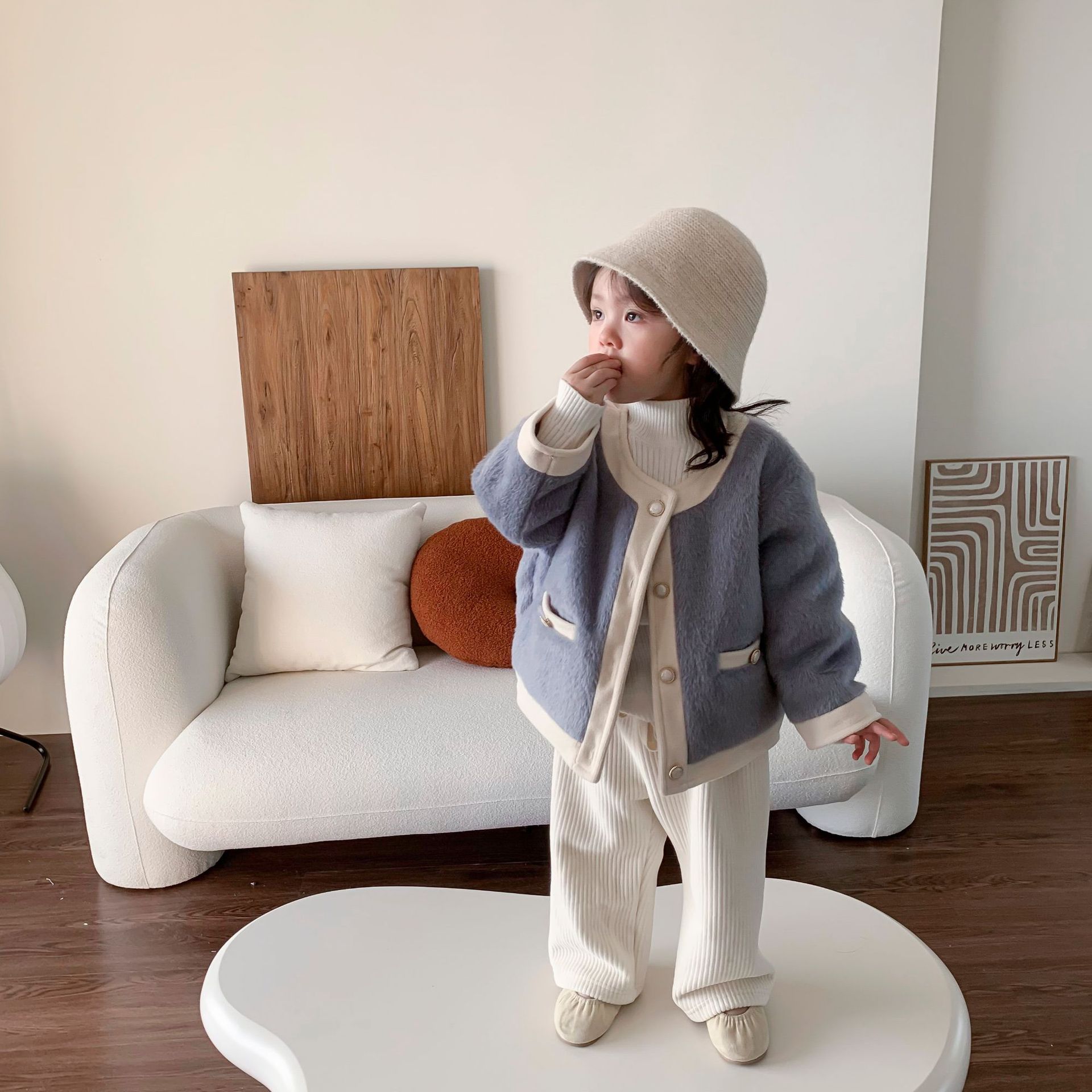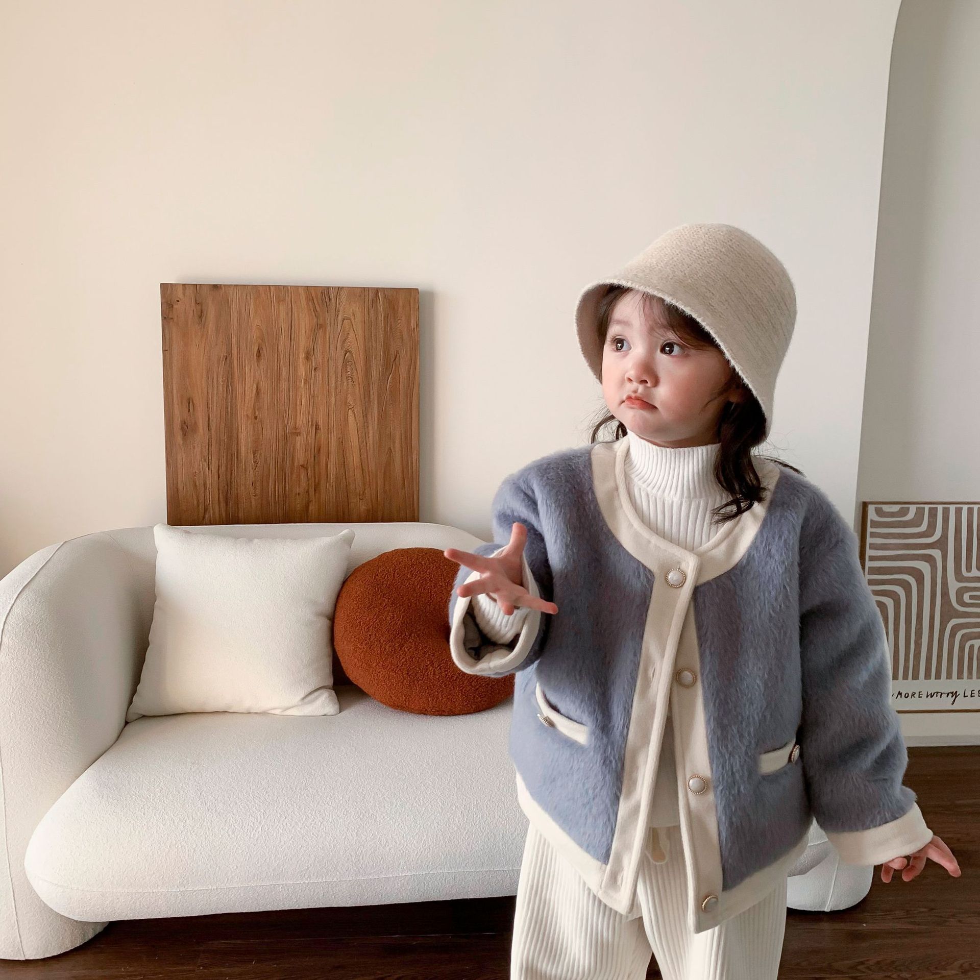 Weimu 아동 코트 봄과 겨울 소녀 단색 작은 향수 카디건 탑 아기 옷 한국 아동 의류 도매