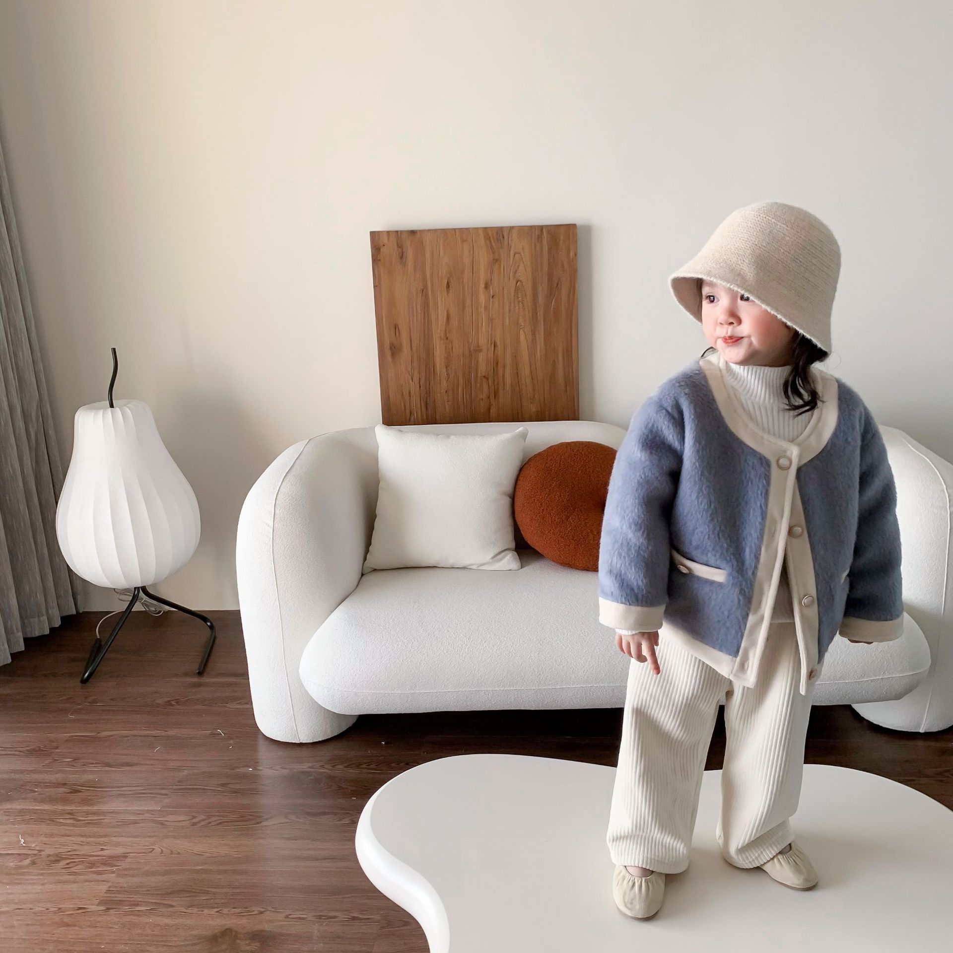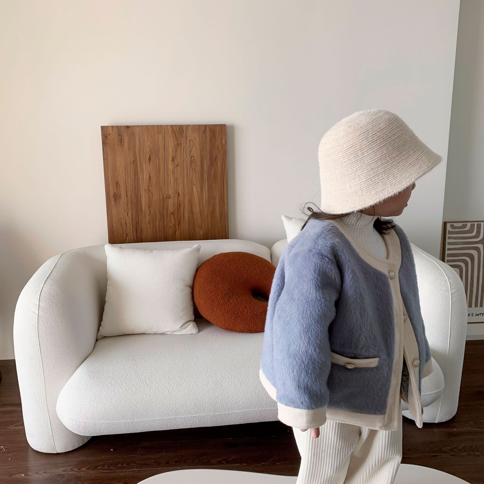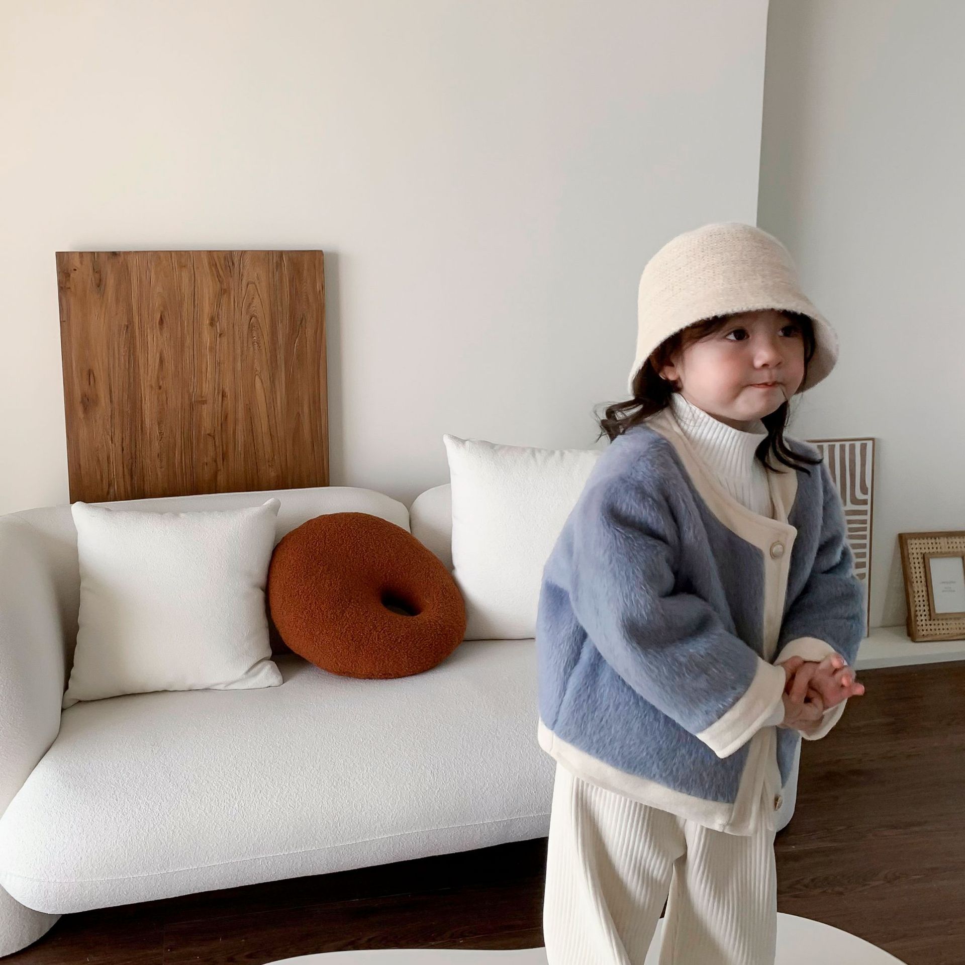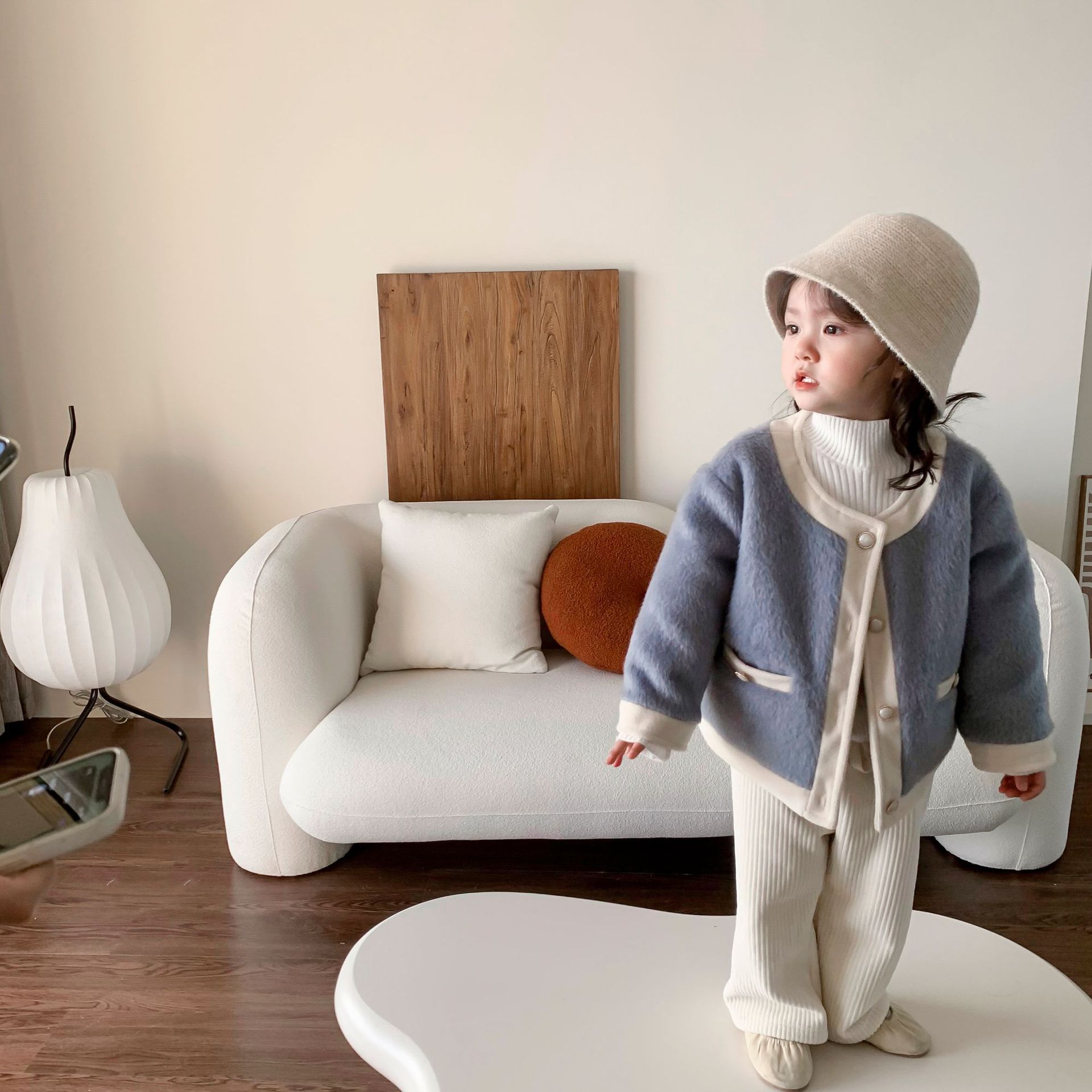 Weimu 아동 코트 봄과 겨울 소녀 단색 작은 향수 카디건 탑 아기 옷 한국 아동 의류 도매