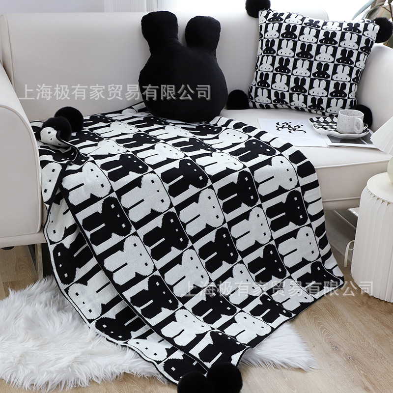귀여운 흑백 토끼 큰 교수형 공 니트 담요 현대 간단한 스타일 거실 소파 담요 침대 꼬리 담요 담요스토어 가기