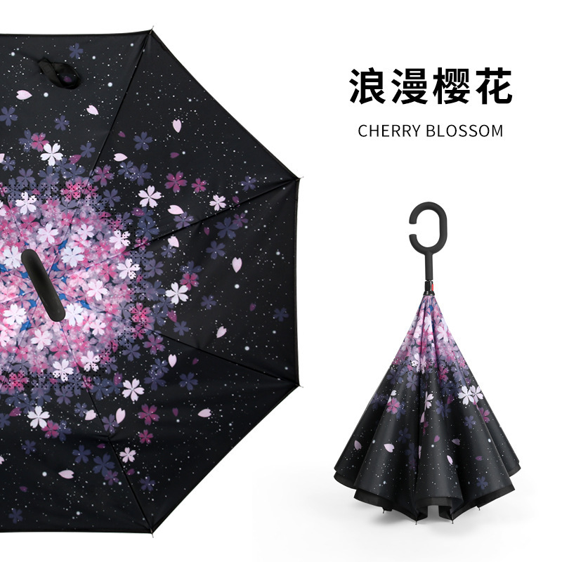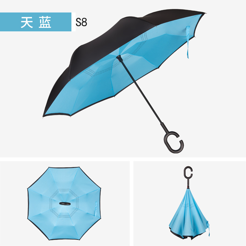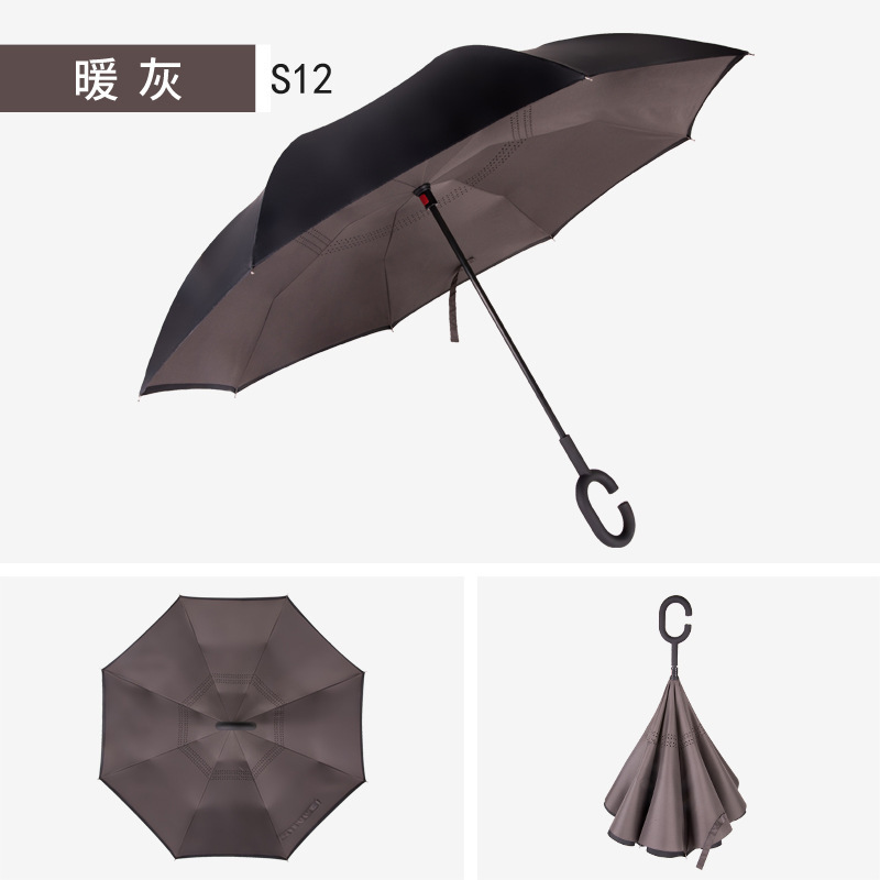 자동차 역 우산 C 형 핸즈프리 더블 레이어 대형 자동 긴 손잡이 우산 상업 선물 광고 우산 도매
