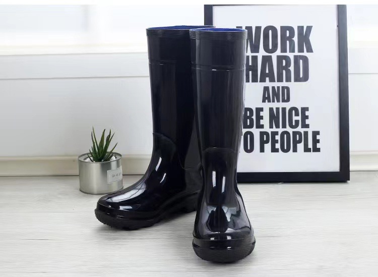 블랙 하이 남성용 레인 부츠 야외 구조 레인 부츠 PVC 소재 부드러운 표면 고무 신발 하우스 내장 그레이 하이 레인 부츠