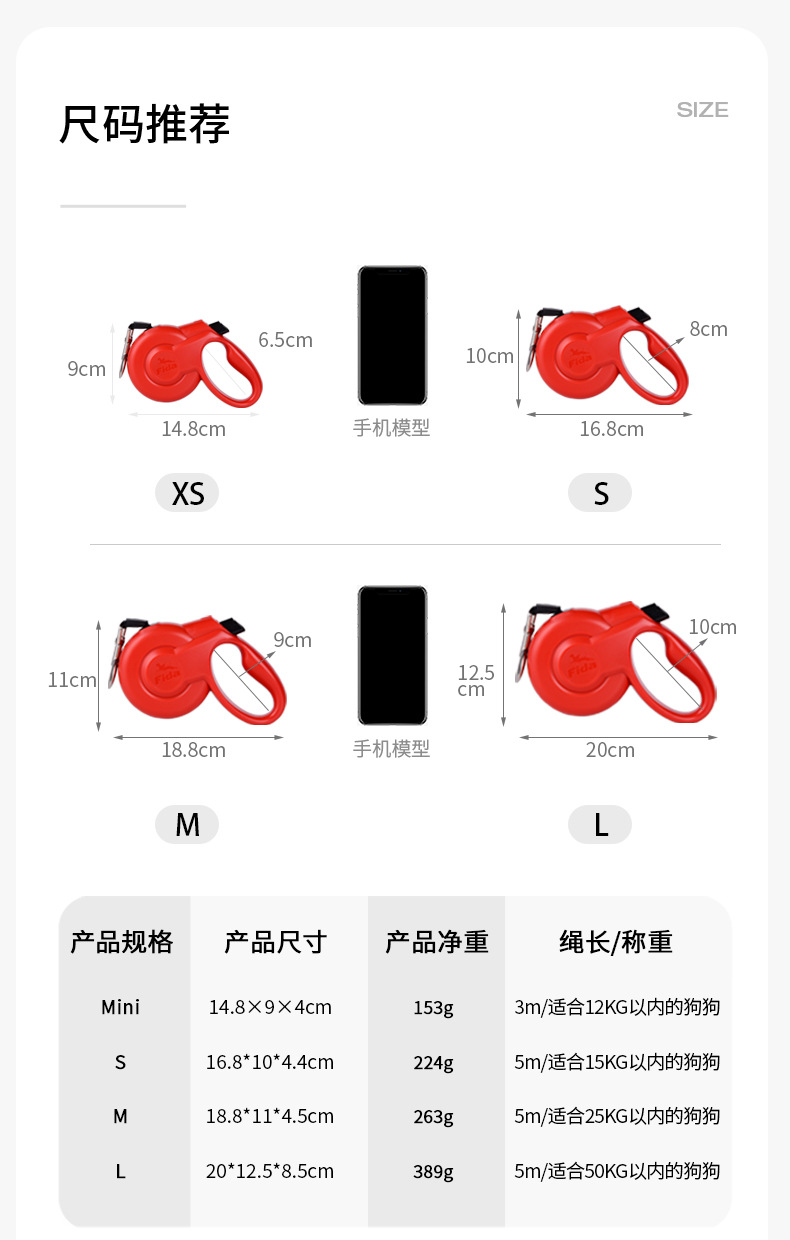 • L-5m/50kg 미만의 개에 적합