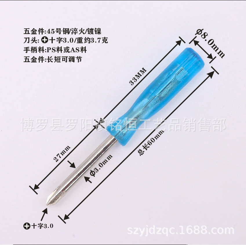 尺寸总60mm刀杆直径2.5mm刀杆长25mm/塑胶刀柄直径8mm塑胶刀柄长33mm五金刀杆可根据客人要求不同型号及长短刀杆/一字型/梅花型/星形/六角型等欢迎订购