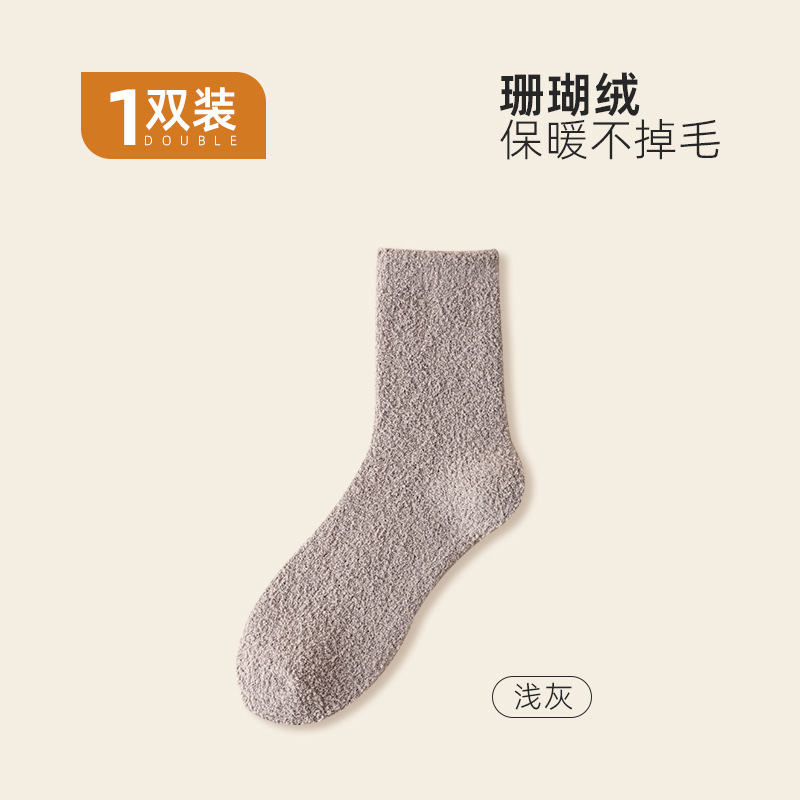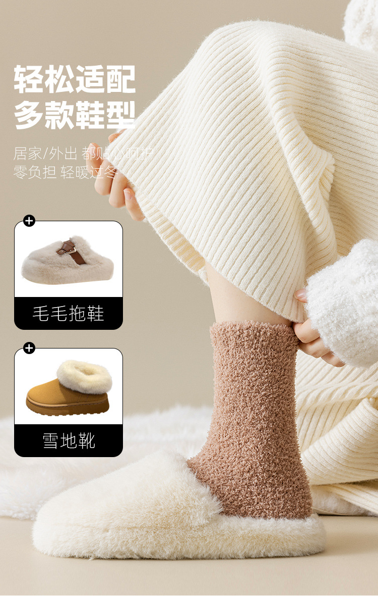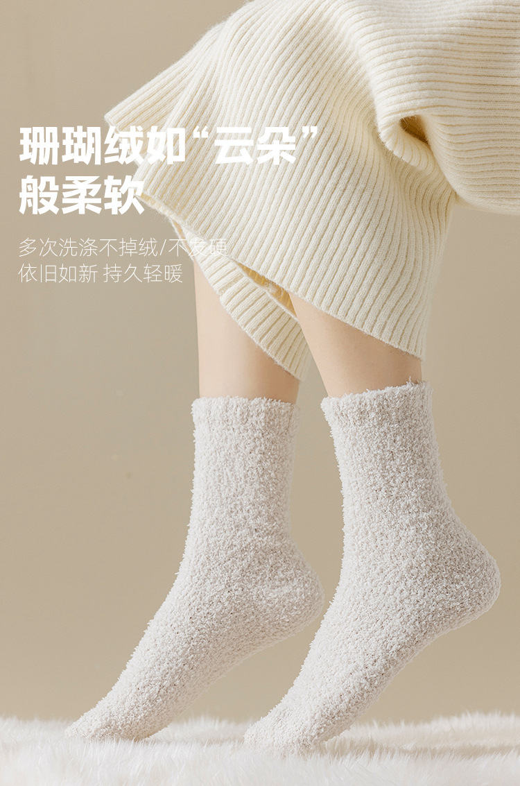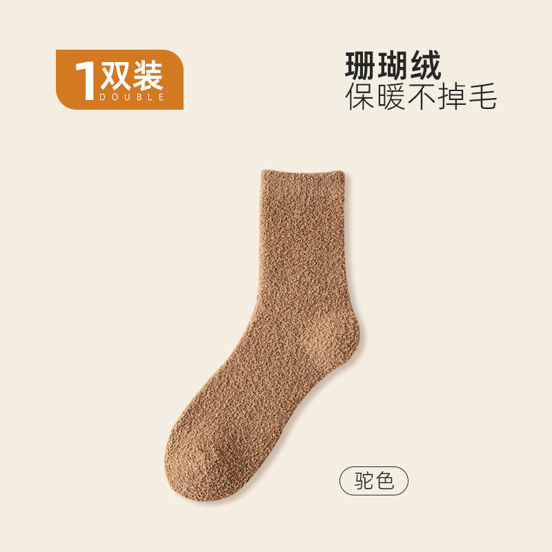 산호 벨벳 양말 가을 겨울 여성용 중간 길이 양말 보풀 없음 추가 보온 두꺼운 양말 수면 양말 산후 양말 바닥 양말