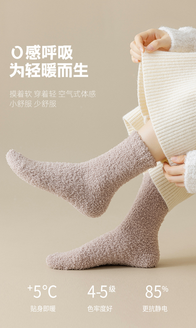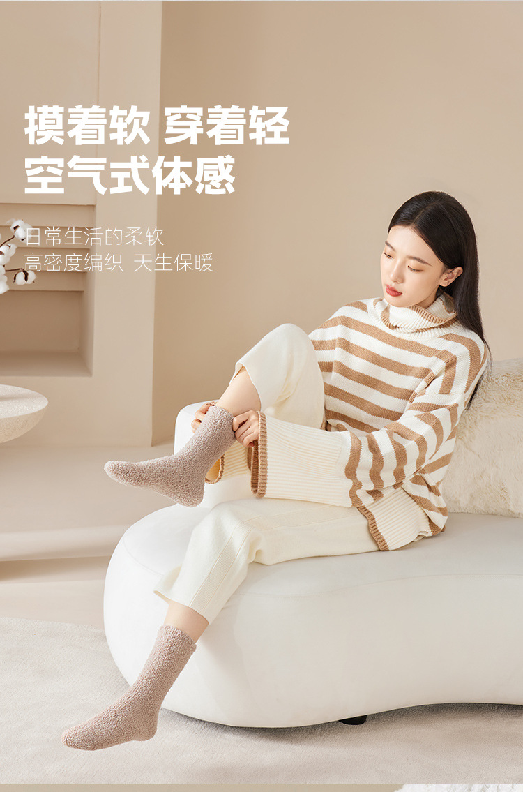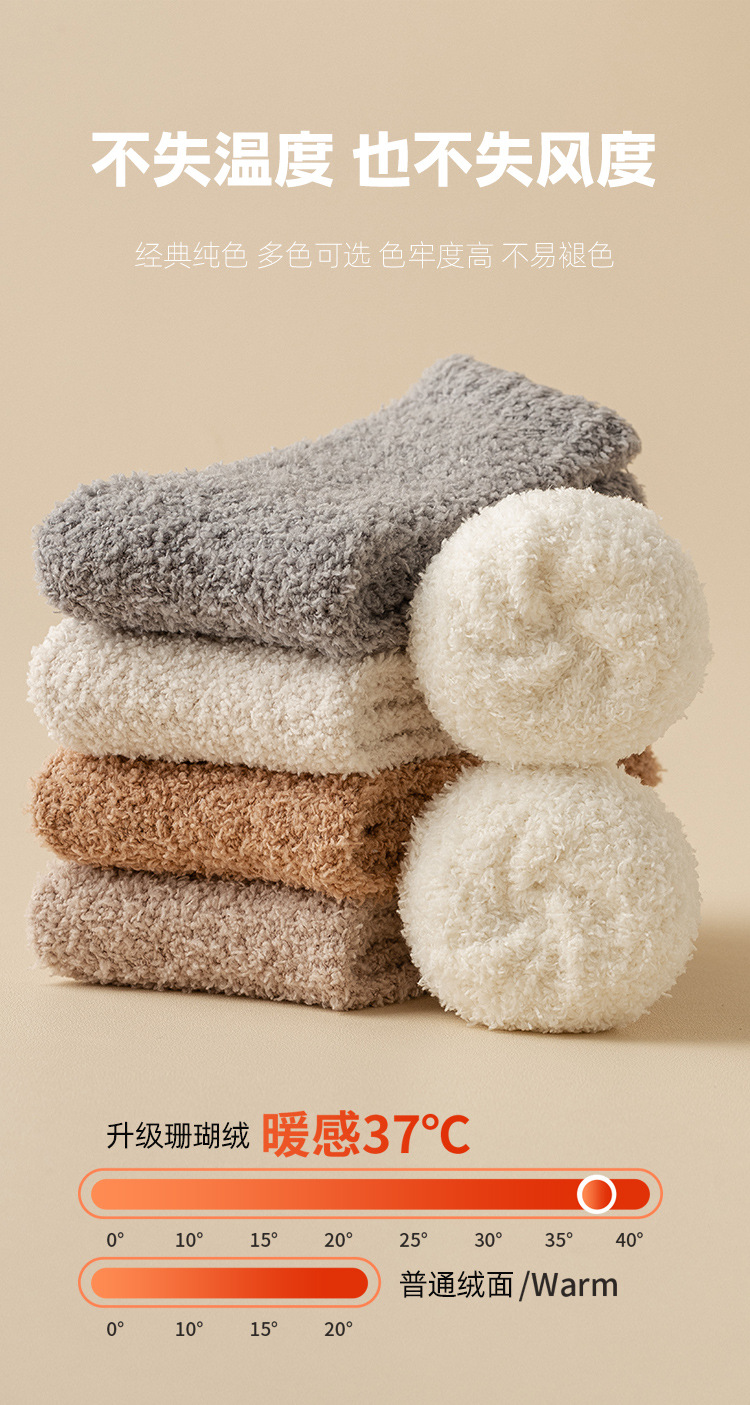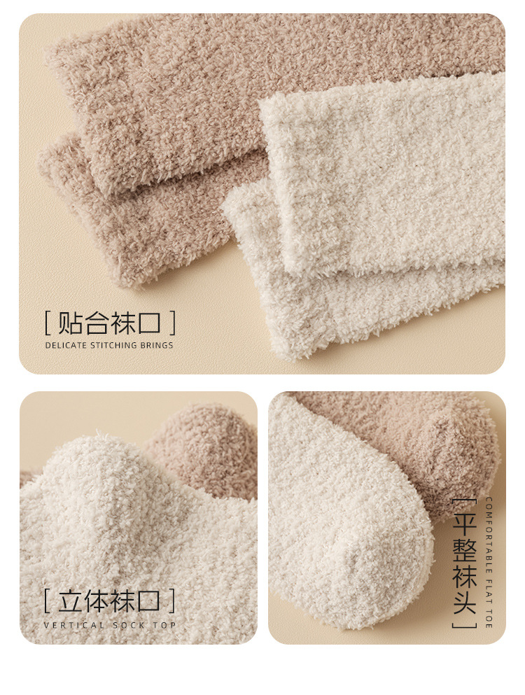 산호 벨벳 양말 가을 겨울 여성용 중간 길이 양말 보풀 없음 추가 보온 두꺼운 양말 수면 양말 산후 양말 바닥 양말