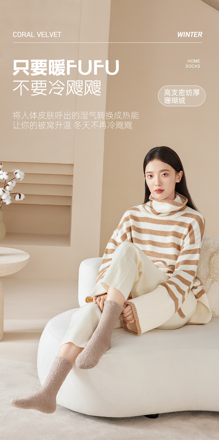 산호 벨벳 양말 가을 겨울 여성용 중간 길이 양말 보풀 없음 추가 보온 두꺼운 양말 수면 양말 산후 양말 바닥 양말스토어 가기