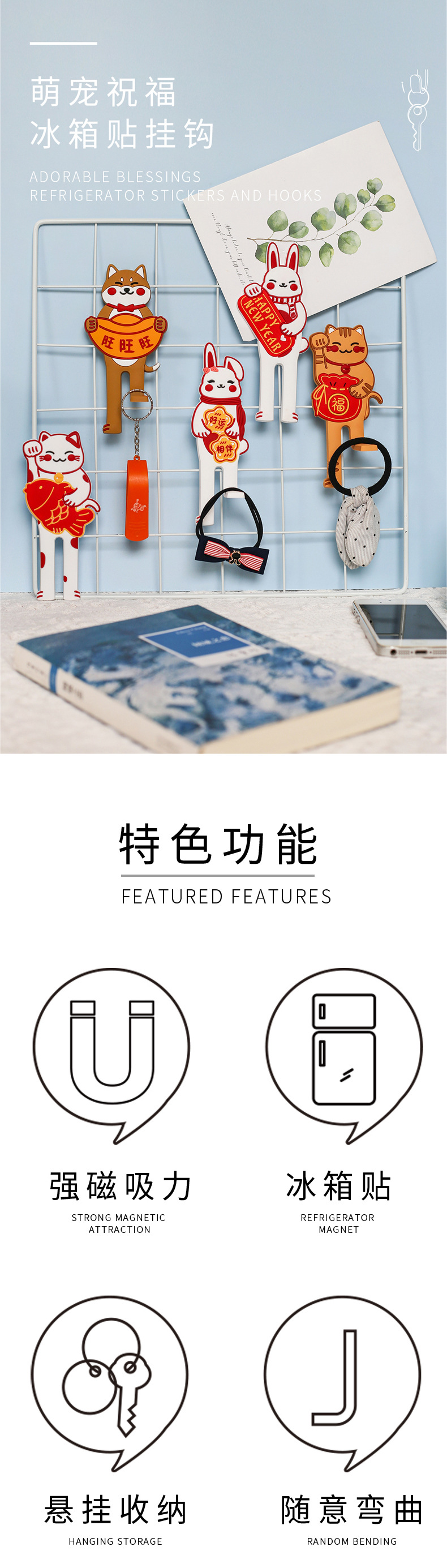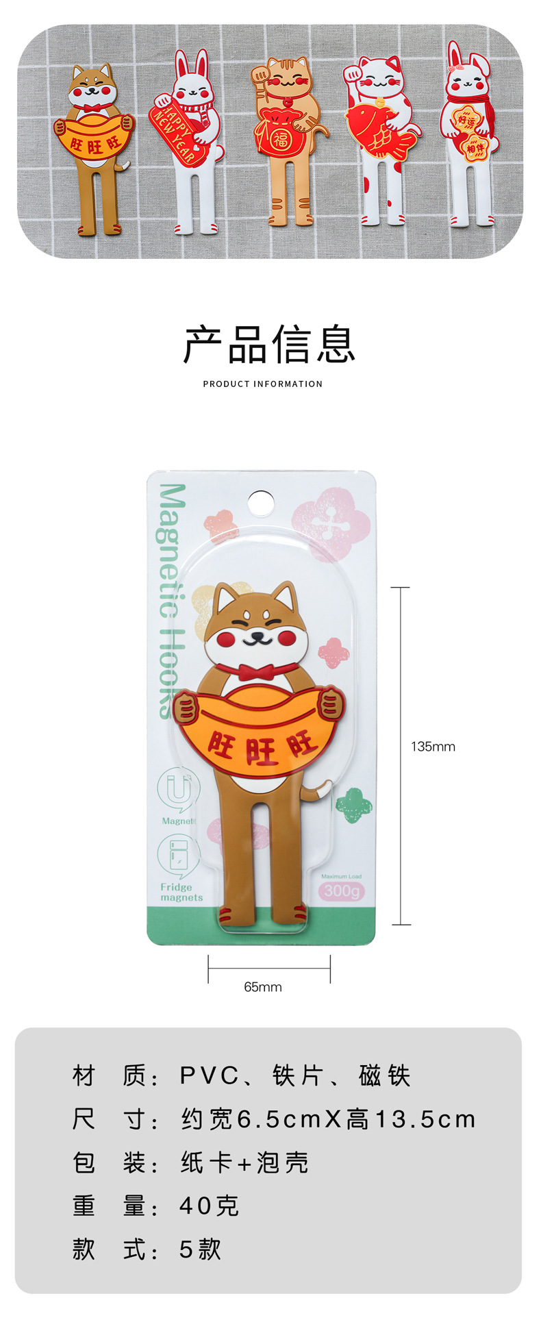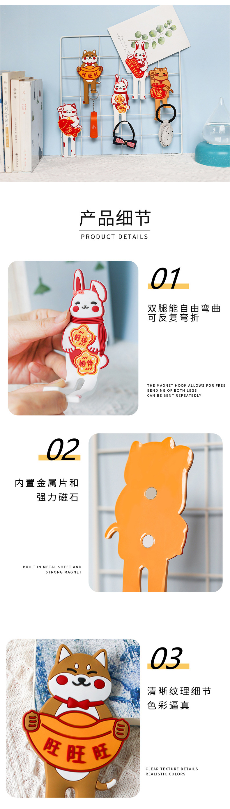 공장 직공급 새해 창조적 인 조수 브랜드 냉장고 스티커 후크 귀여운 동물 자석 만화 손톱없는 보관 후크스토어 가기