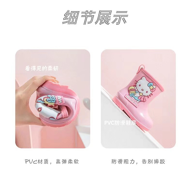 헬로 키티 어린이 장화 여아 사계절 미끄럼 방지 고무 신발 중소 어린이 짧은 튜브 물 신발 어린이 아기 장화스토어 가기
