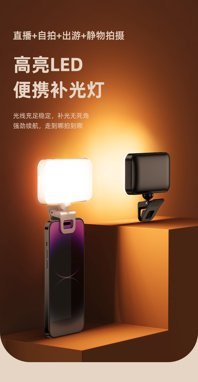 새로운 휴대 전화 셀카 뷰티 필 라이트 야외 라이브 촬영 미니 필 라이트 LED 휴대용 포켓 라이트