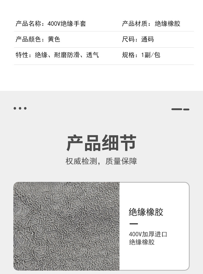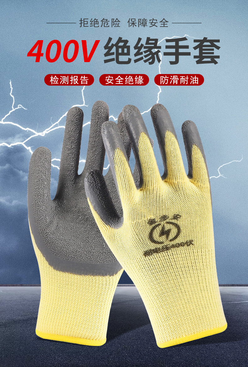 400V 전기 절연 장갑 380V 저전압 전기 방지 라이브 작업 고무 유연한 미끄럼 방지 내마모성 절연 장갑스토어 가기