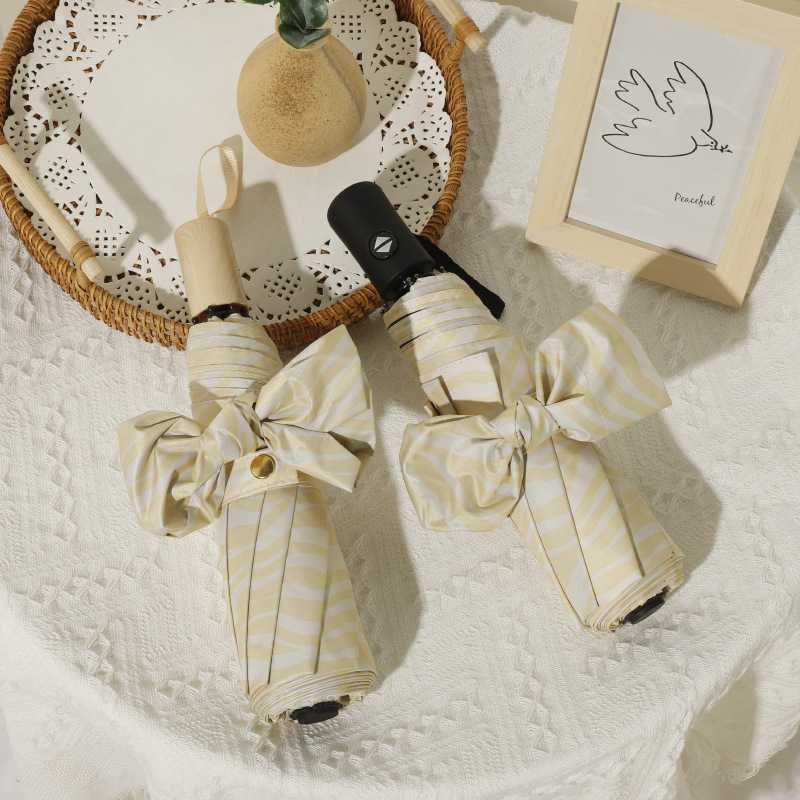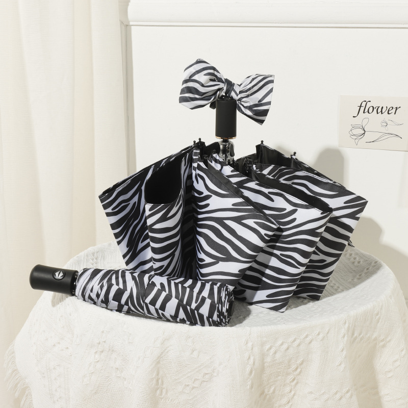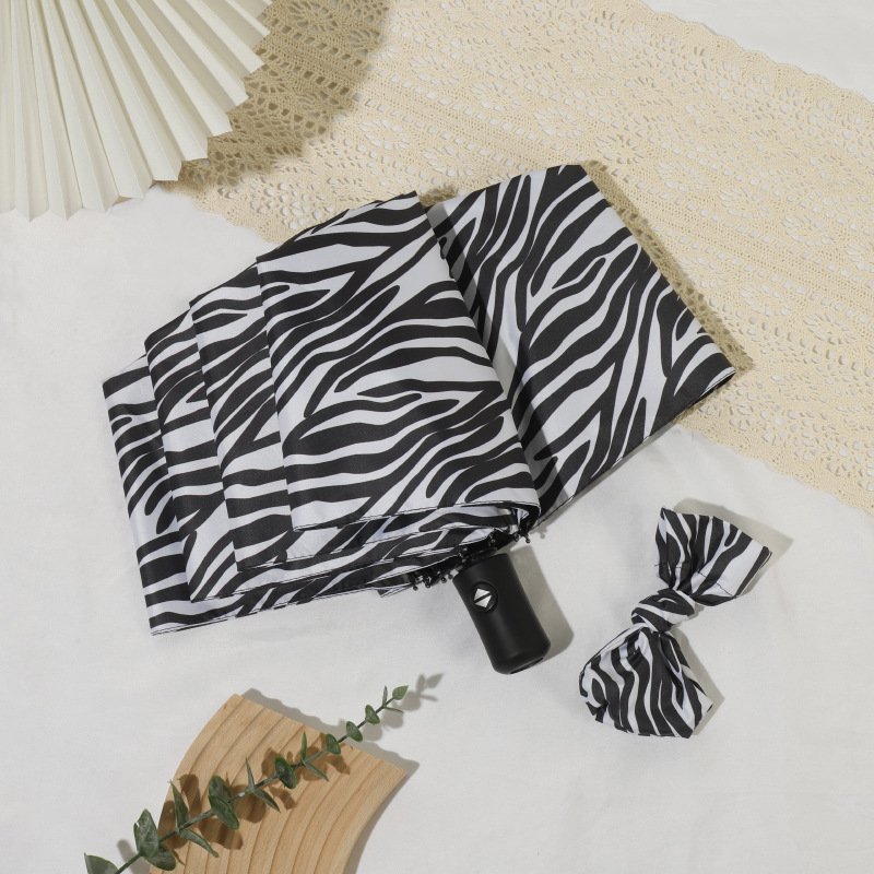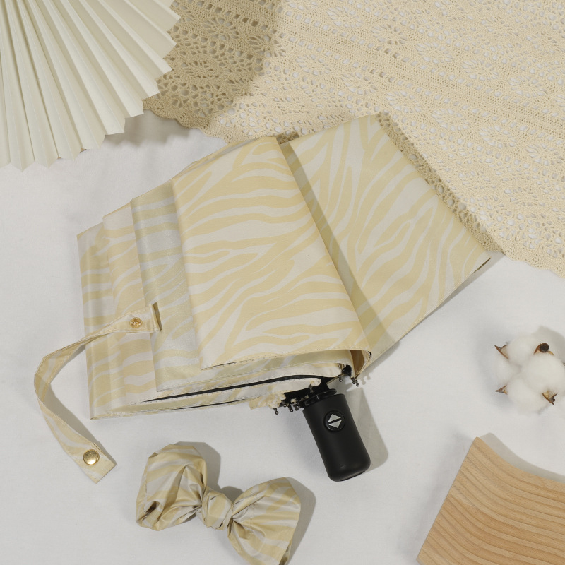 노크 따뜻한 노란색 얼룩말 우산 여성용 차양 3 접이식 써니와 비오는 이중 사용 자외선 차단제 검은 고무 자동 태양 우산