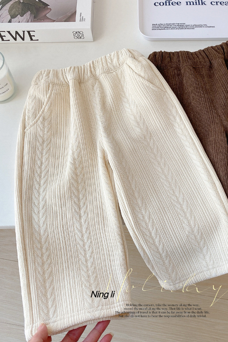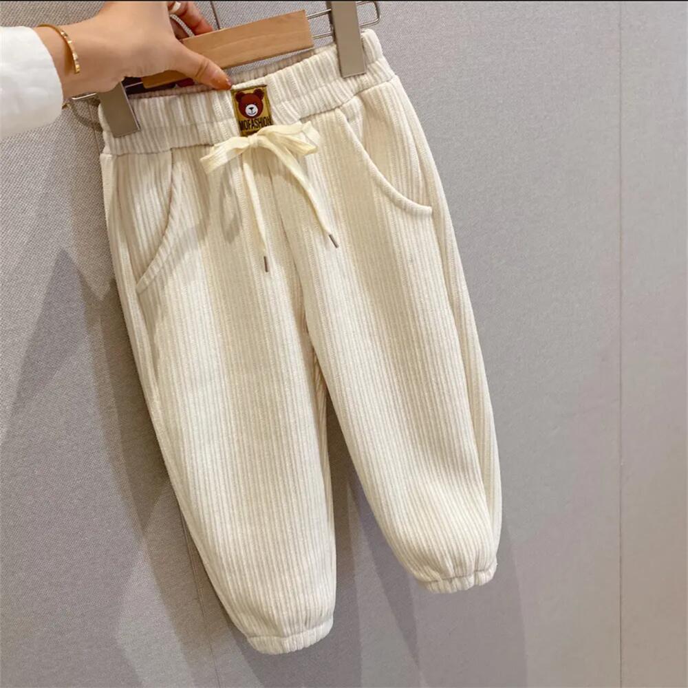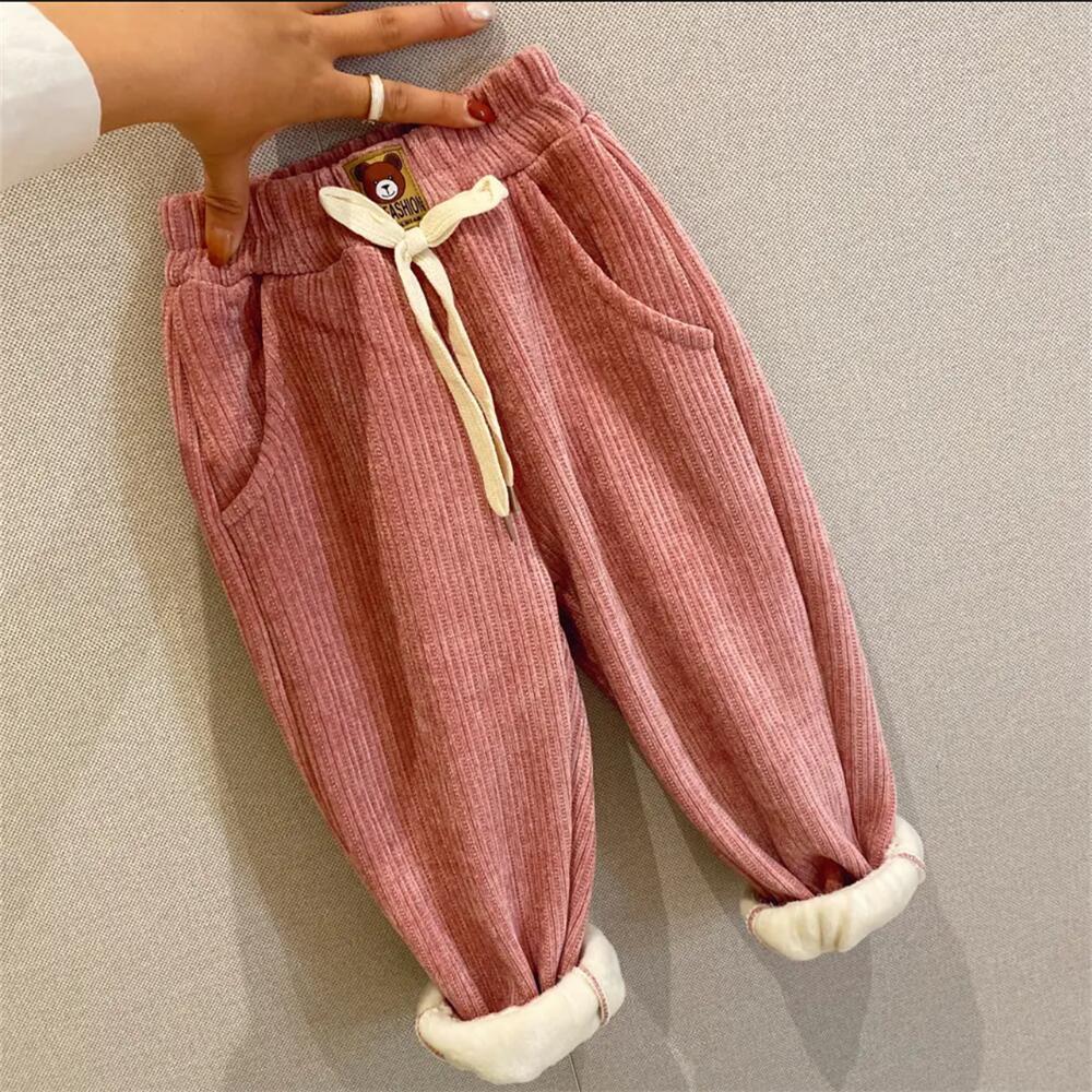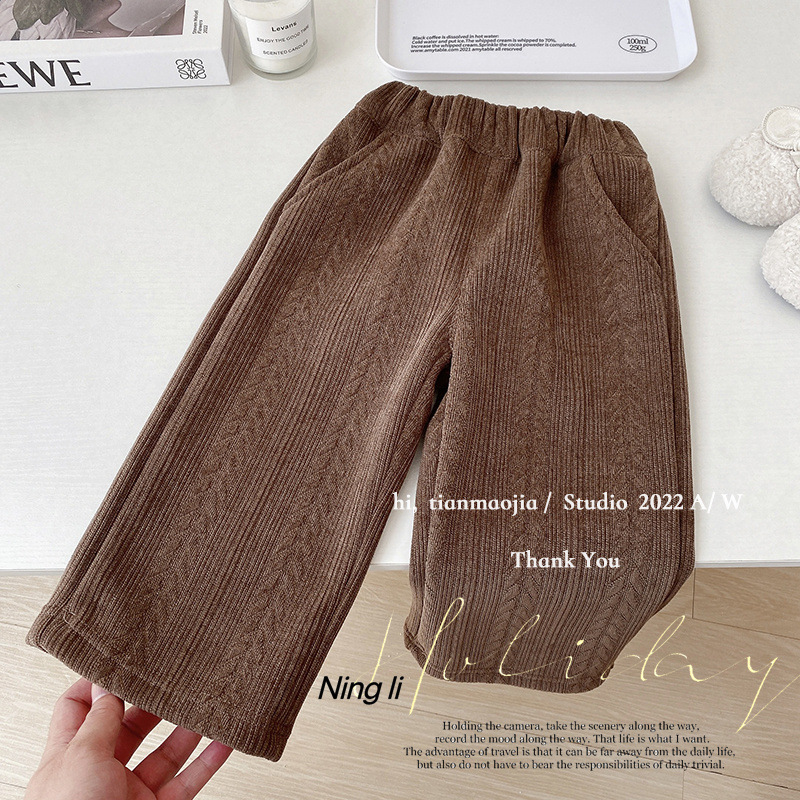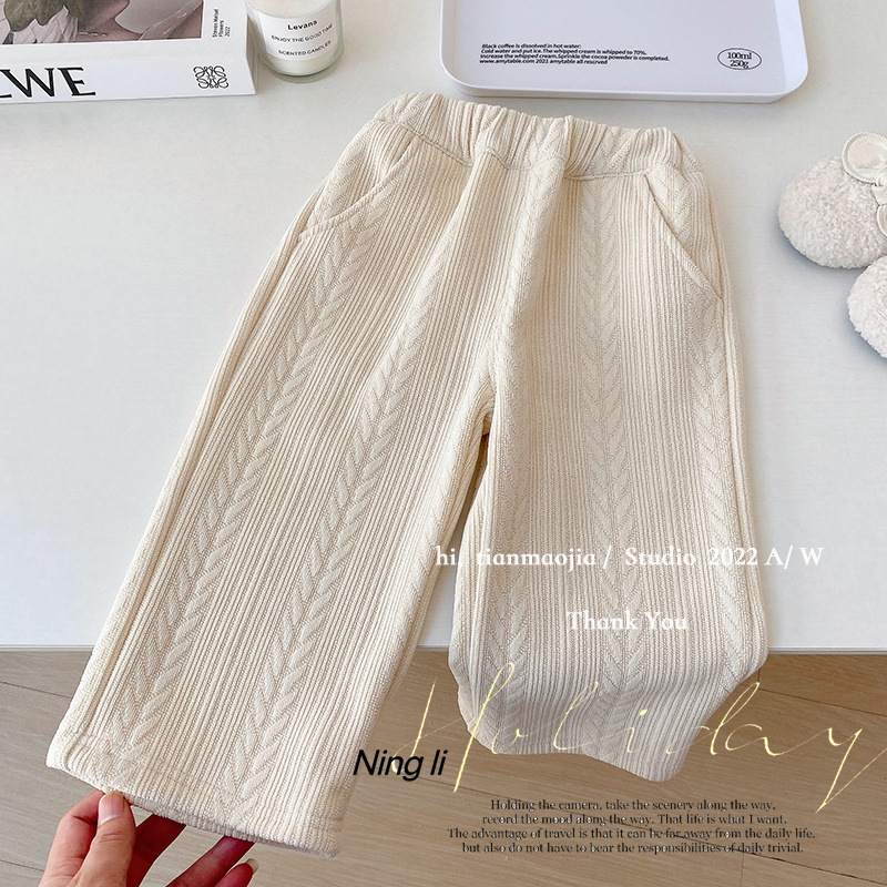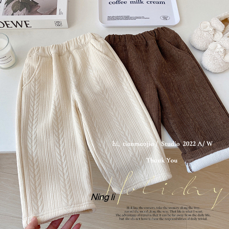 라임 소녀의 와이드 레그 팬츠 가을과 겨울 기모 두꺼운 베이지 베이비 원피스 벨벳 팬츠 베이비 캐주얼 팬츠 스트레이트 레그 팬츠