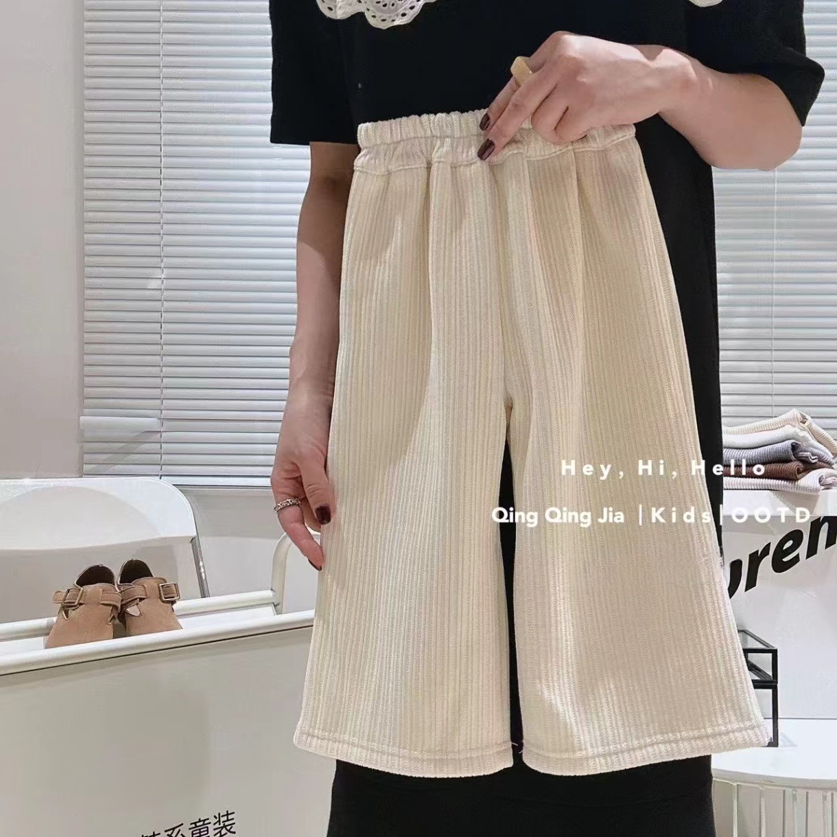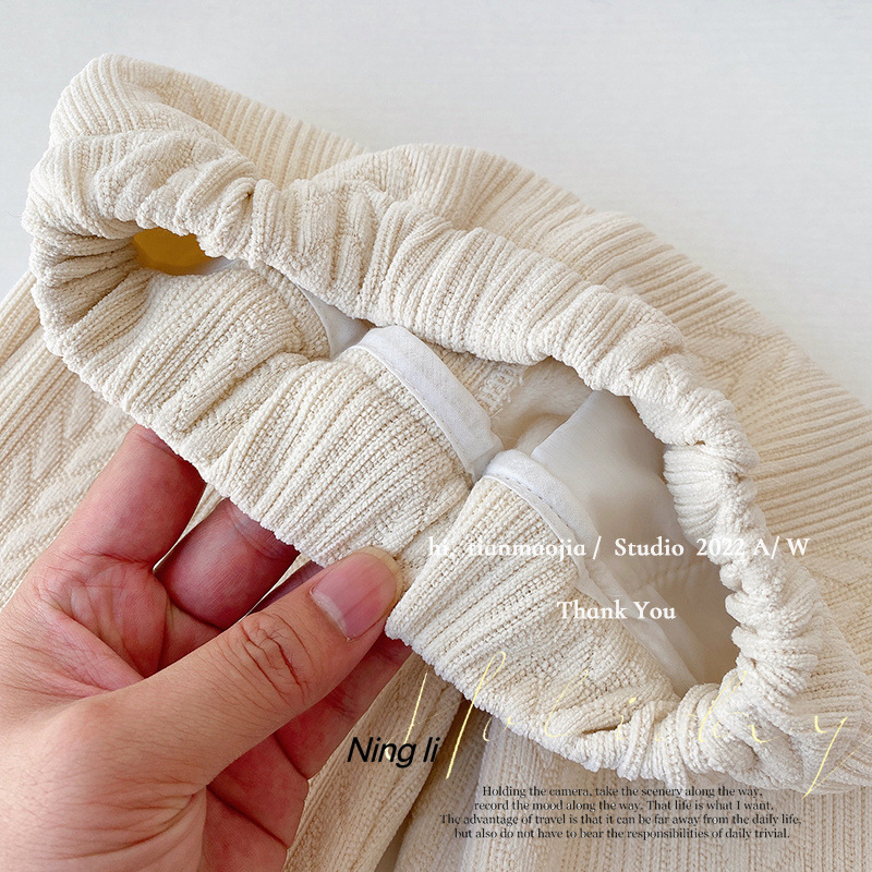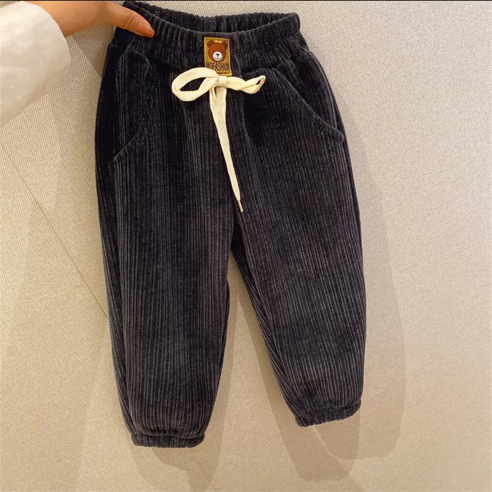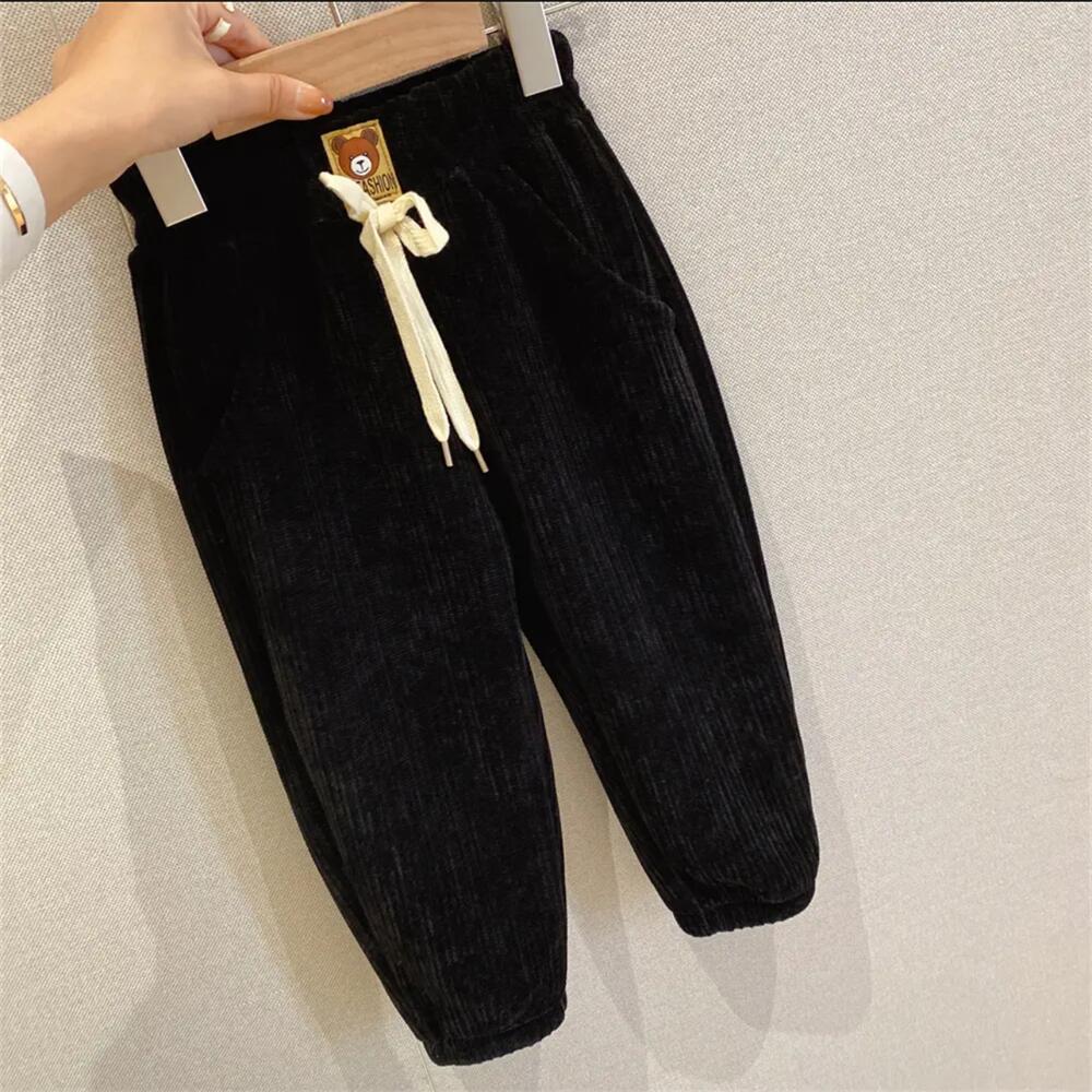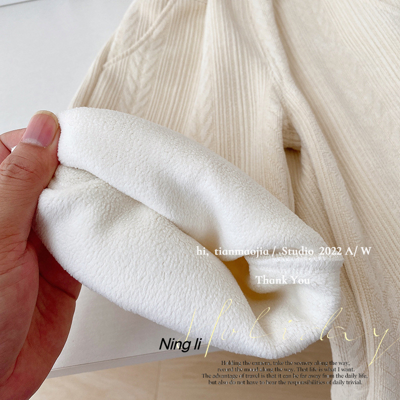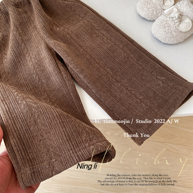 라임 소녀의 와이드 레그 팬츠 가을과 겨울 기모 두꺼운 베이지 베이비 원피스 벨벳 팬츠 베이비 캐주얼 팬츠 스트레이트 레그 팬츠