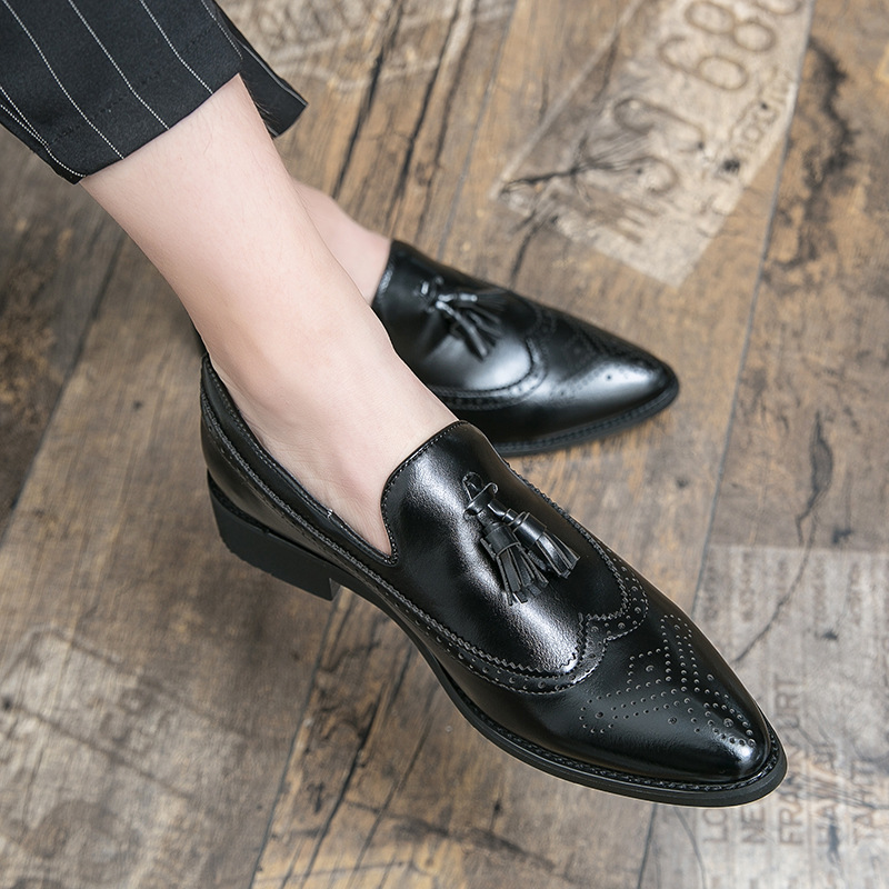 가을 영국 작은 가죽 신발 남성용 술 빈티지 로퍼 증가 세일링 슈즈 한국식 신발 캐주얼 가죽 신발 남성용스토어 가기