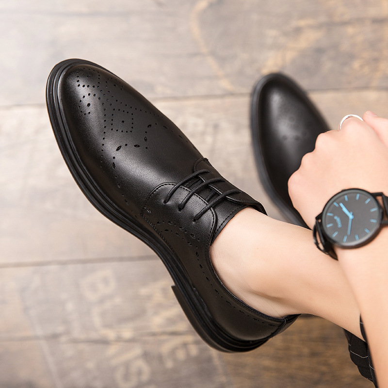 가죽 신발 남자의 비즈니스 원피스 캐주얼 신발 남자의 유행 신발 남자의 가죽 신발 남자의 한국 스타일 영국 여름 통기성 남성 신발