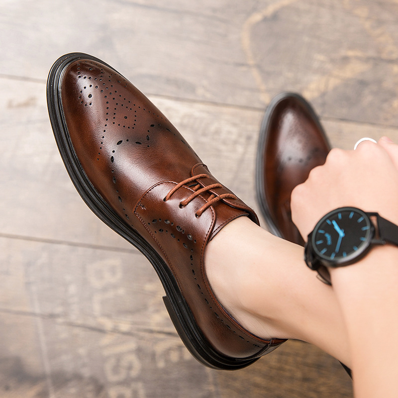 가죽 신발 남자의 비즈니스 원피스 캐주얼 신발 남자의 유행 신발 남자의 가죽 신발 남자의 한국 스타일 영국 여름 통기성 남성 신발스토어 가기