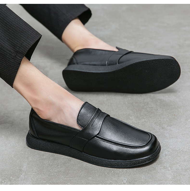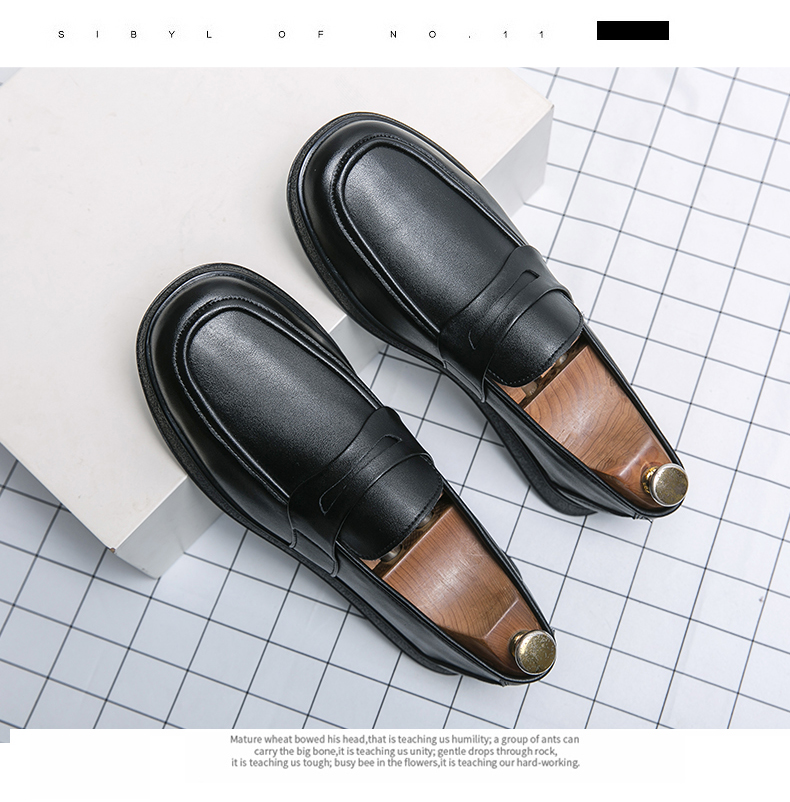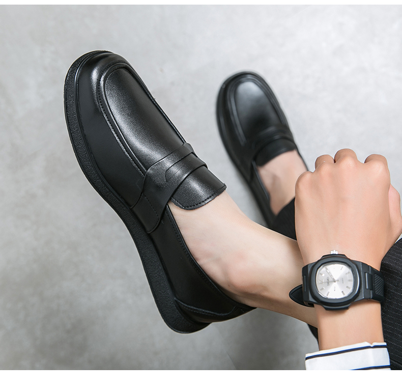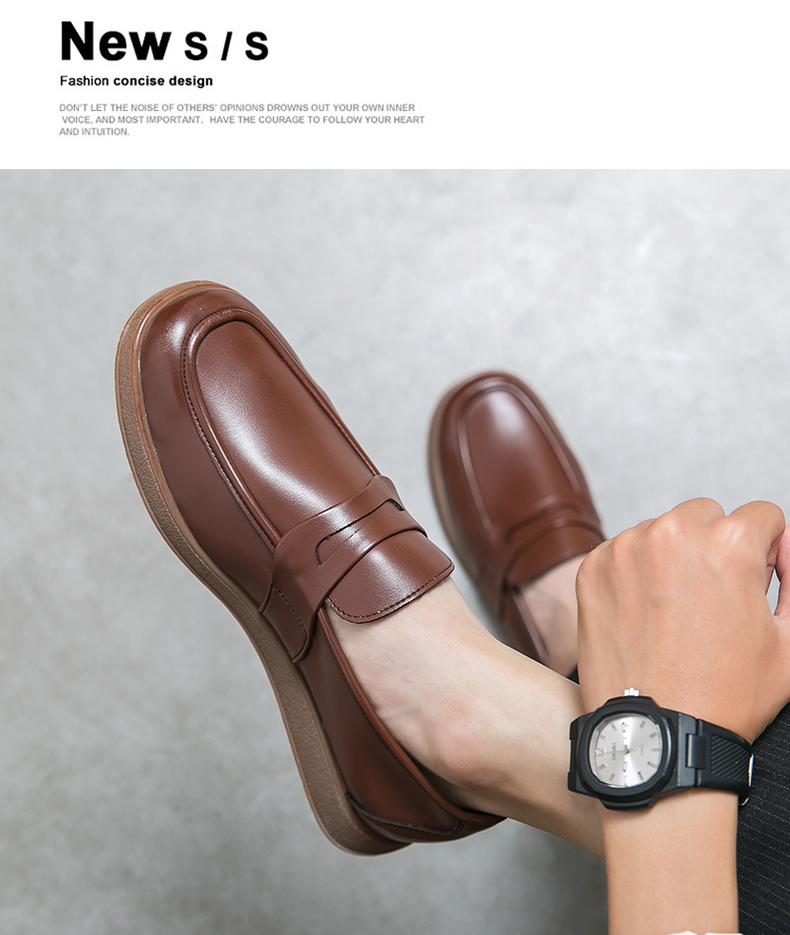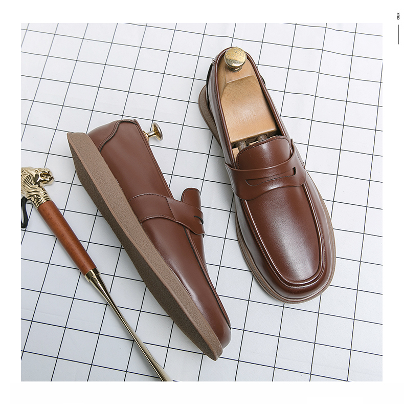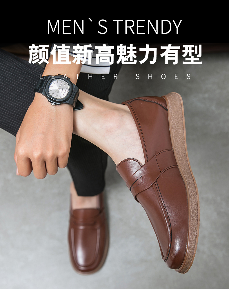 남성용 라운드 토 정품 가죽 캐주얼 가죽 신발 슬립온 영국 비즈니스 원피스 남성용 모든 매치 소형 가죽 신발스토어 가기