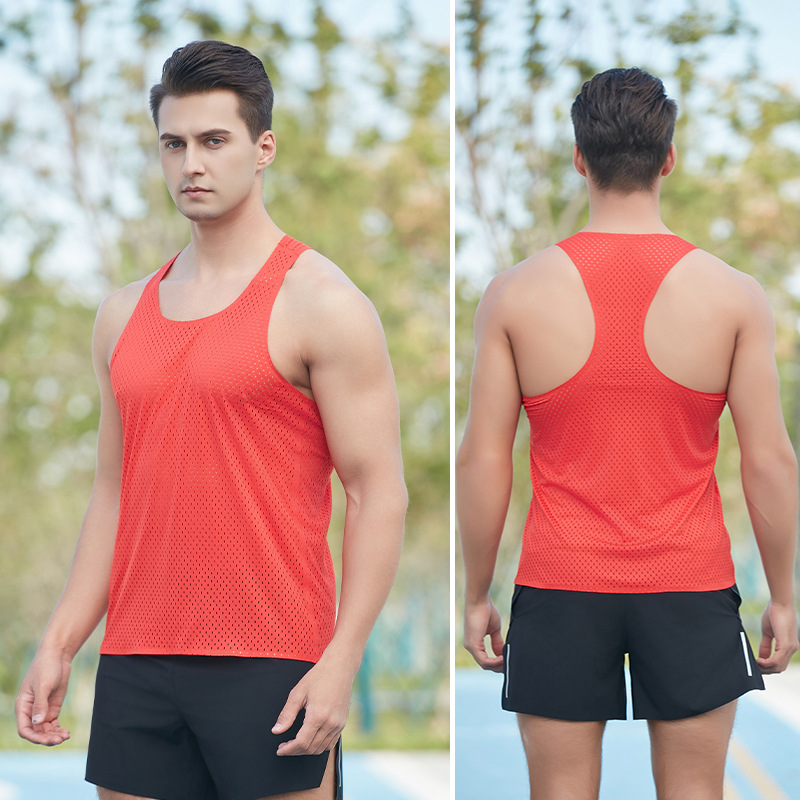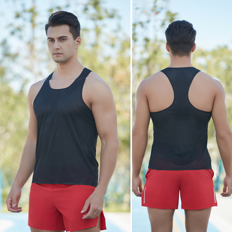 마라톤 달리기 속건 조끼 남성 스포츠 트랙 및 필드 크로스 컨트리 훈련 경량 풍동 조끼 메쉬 레이싱 조끼