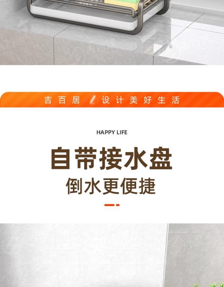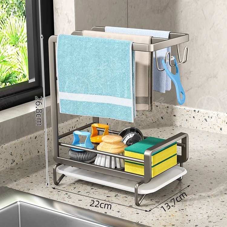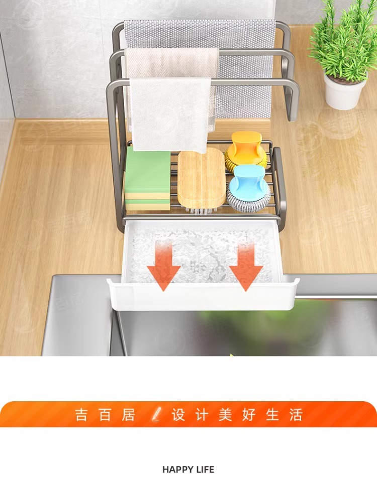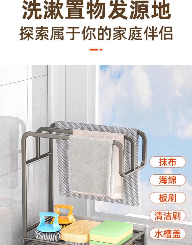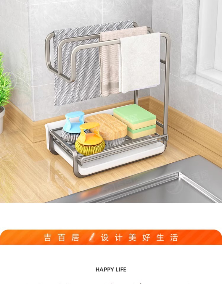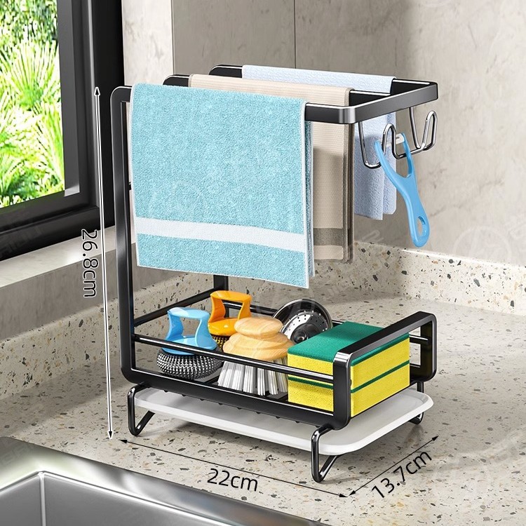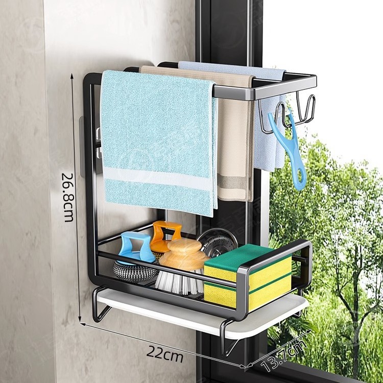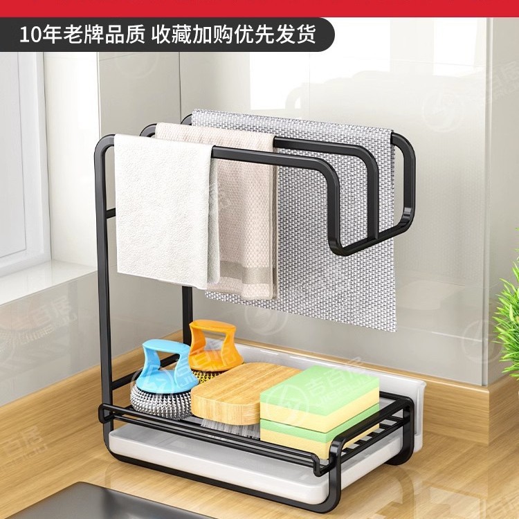• [신선한 모델] 강화된 이중 극 모델●걸레 배수 랙 [싱크대에 직접 자동 배수] - 블랙