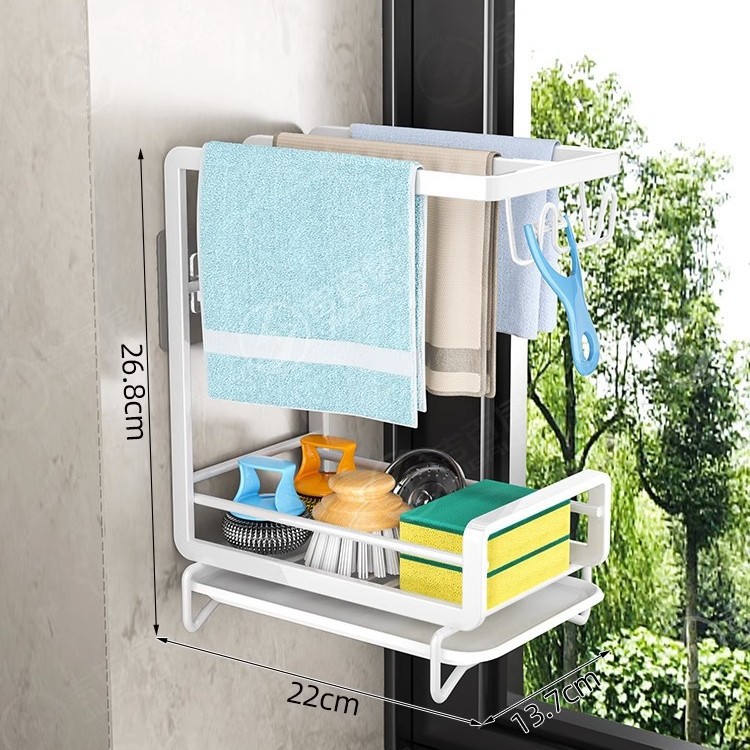 • [신선한 모델] 강화된 이중 극 모델●걸레 배수 랙 [싱크대에 직접 자동 배수] - 유백색