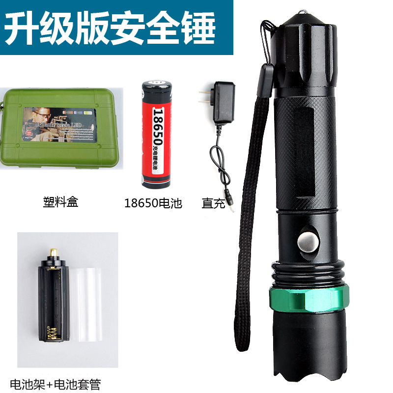 • 안전 망치 손전등 + 1 18650 + 충전기