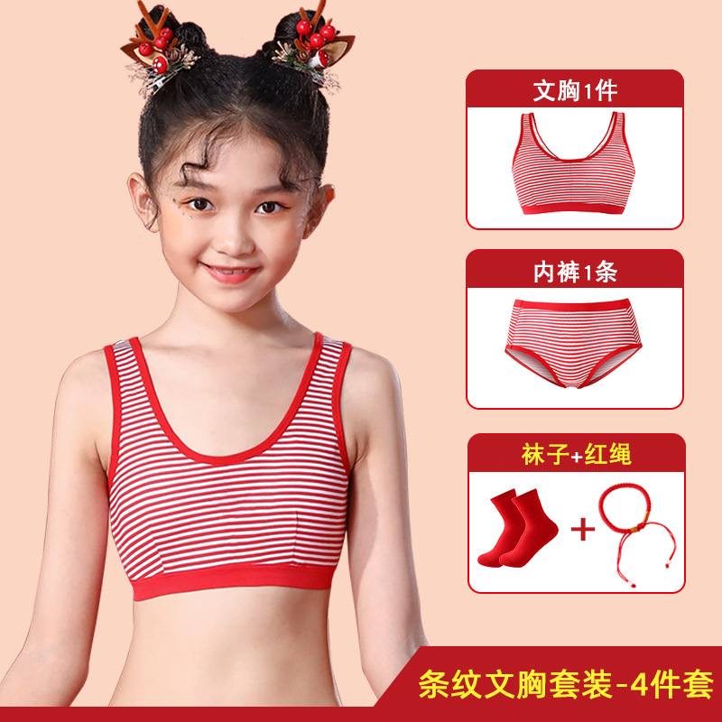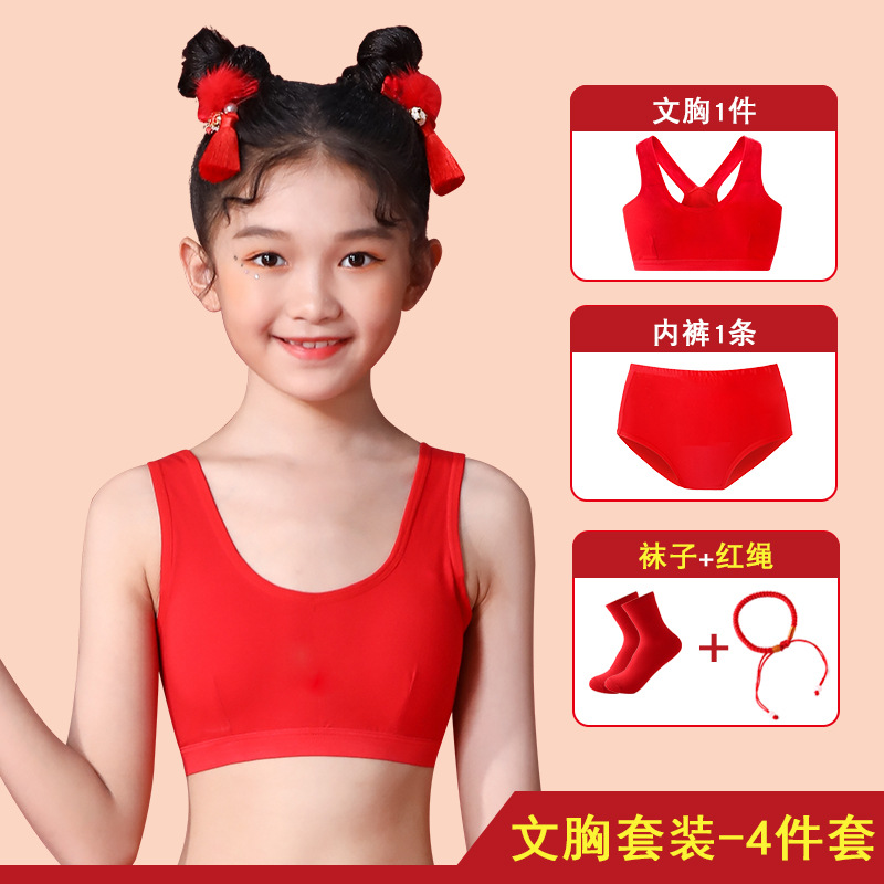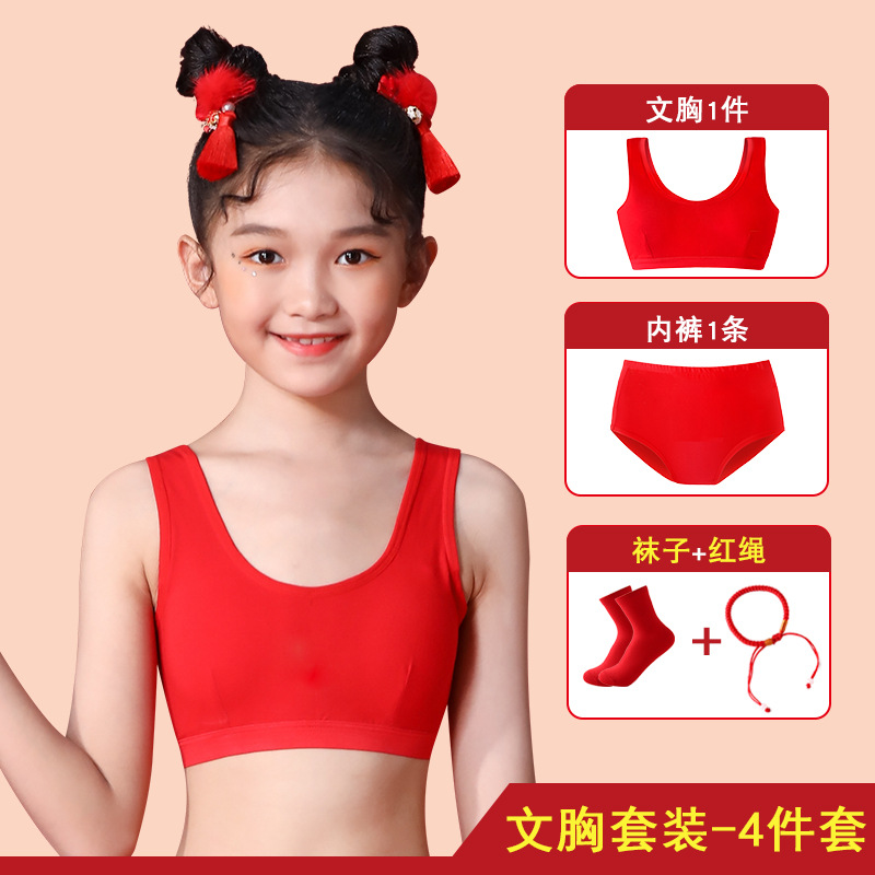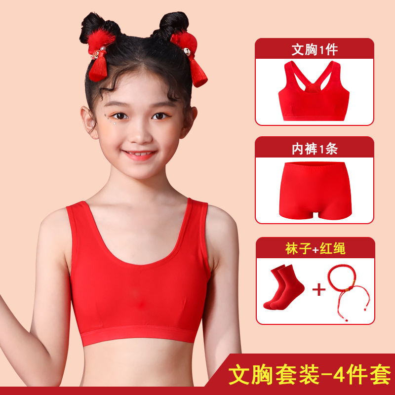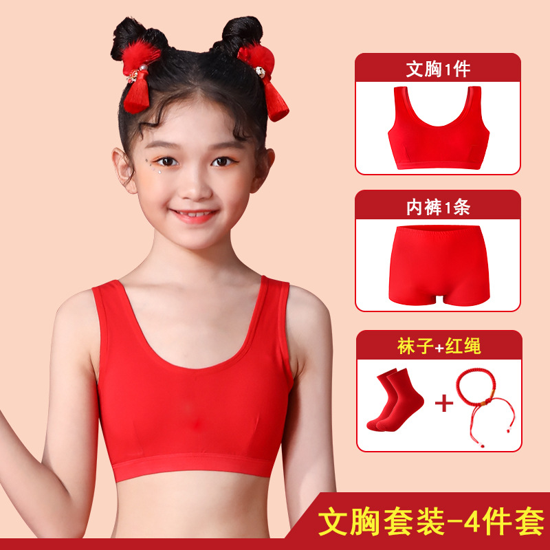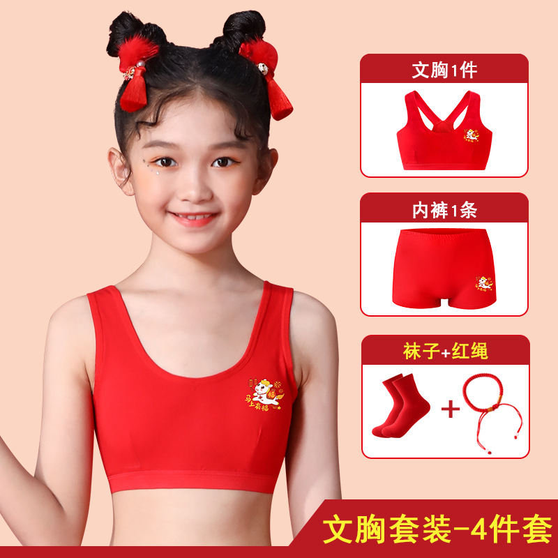 여아의 탄생년 레드 속옷 세트, 어린이의 말의 해 레드 의류, 12세 순면 13세 소녀용 작은 조끼 브라