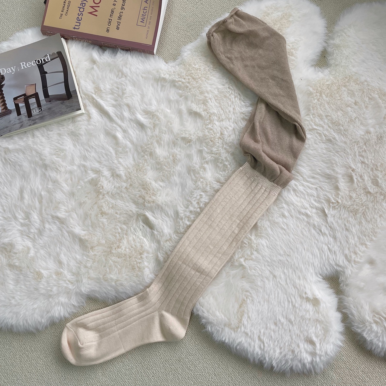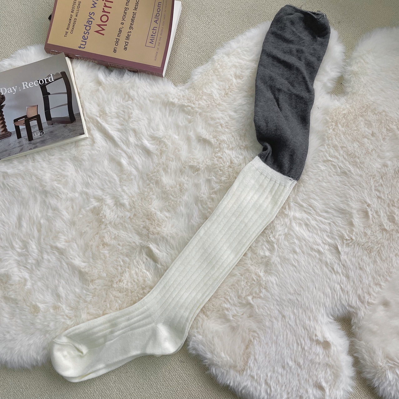 디자인 패션 양말 대비 컬러 스티칭 세로 줄무늬 높은 튜브 스태킹 양말 무릎 위 긴 튜브 양말 슬리밍 모든 매치스토어 가기