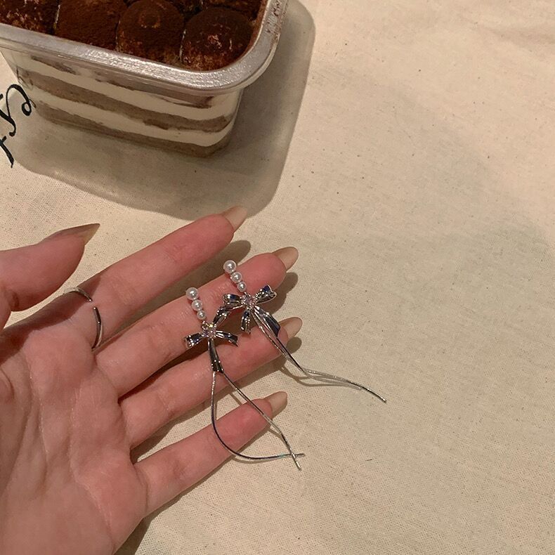 진주 활 술 귀걸이 여성의 틈새 디자인 고급 이어 스터드 2023 새로운 가을 우아한 귀걸이스토어 가기