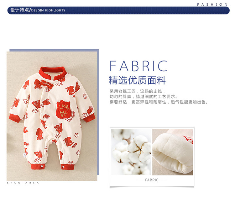 맞춤형 아기 새해 옷 두꺼운 겨울 아기 면 패딩 코트 중국 스타일 토끼 새해 면 패딩 코트 신생아 점프 슈트스토어 가기