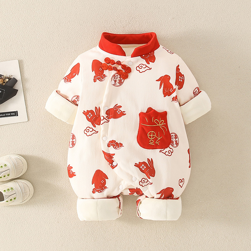 맞춤형 아기 새해 옷 두꺼운 겨울 아기 면 패딩 코트 중국 스타일 토끼 새해 면 패딩 코트 신생아 점프 슈트