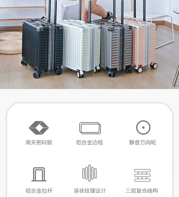 알루미늄 프레임 여행가방 남녀공용 18inch 경량 기내용 여행가방 16 소형 미니 비밀번호 트롤리 박스 회전 바퀴스토어 가기