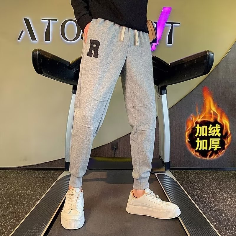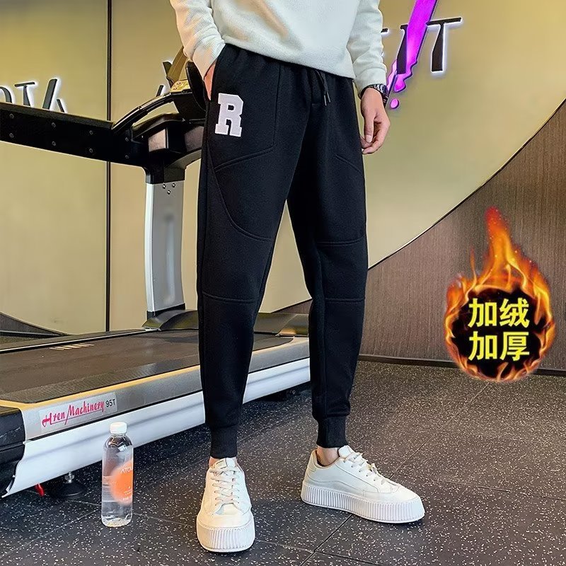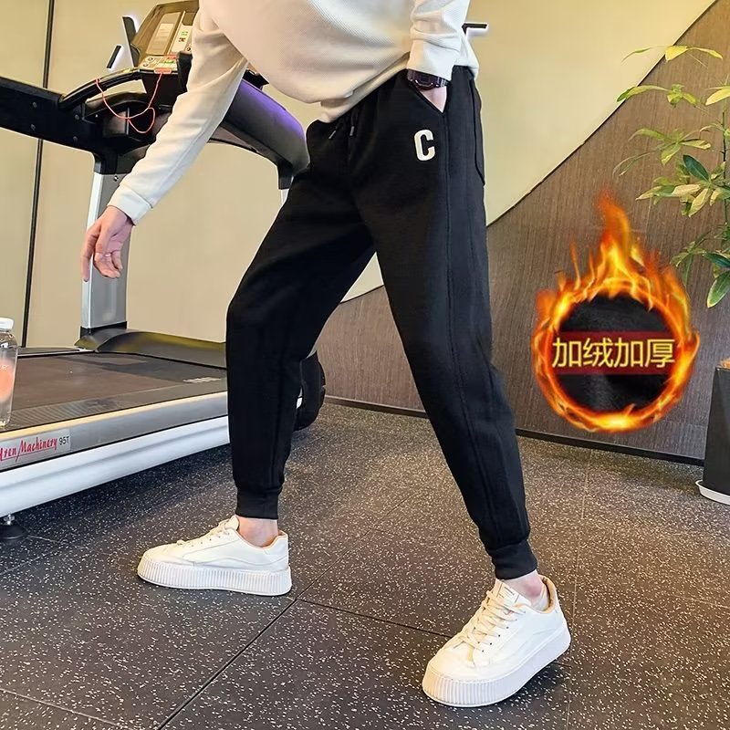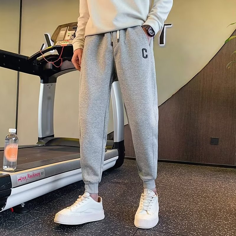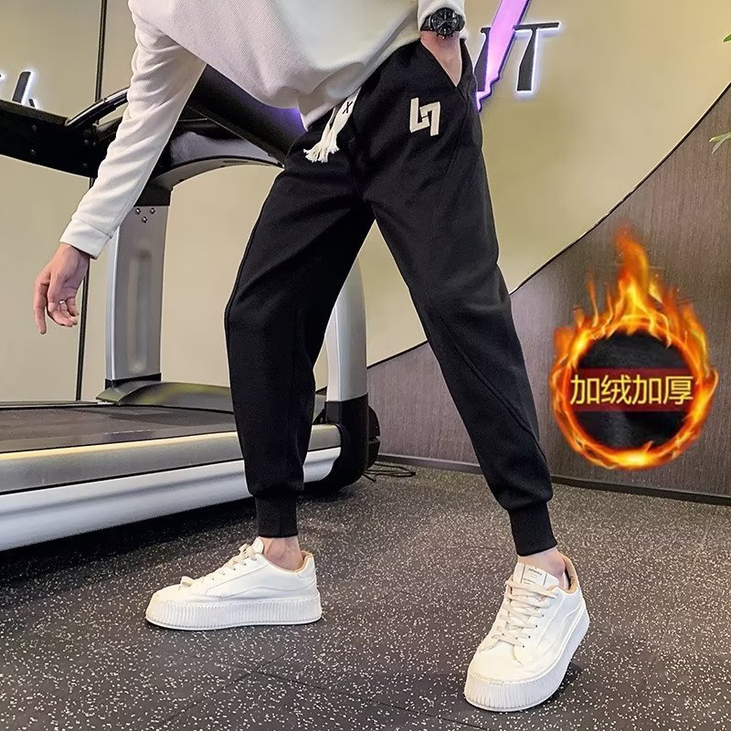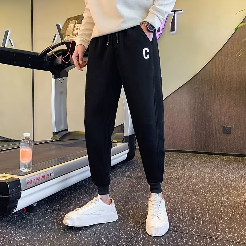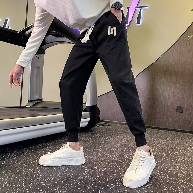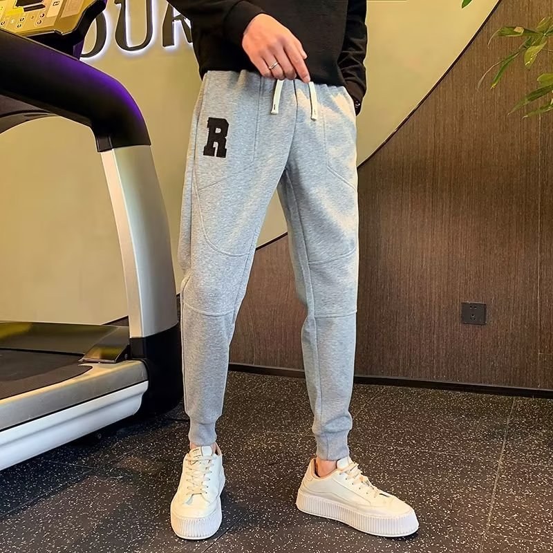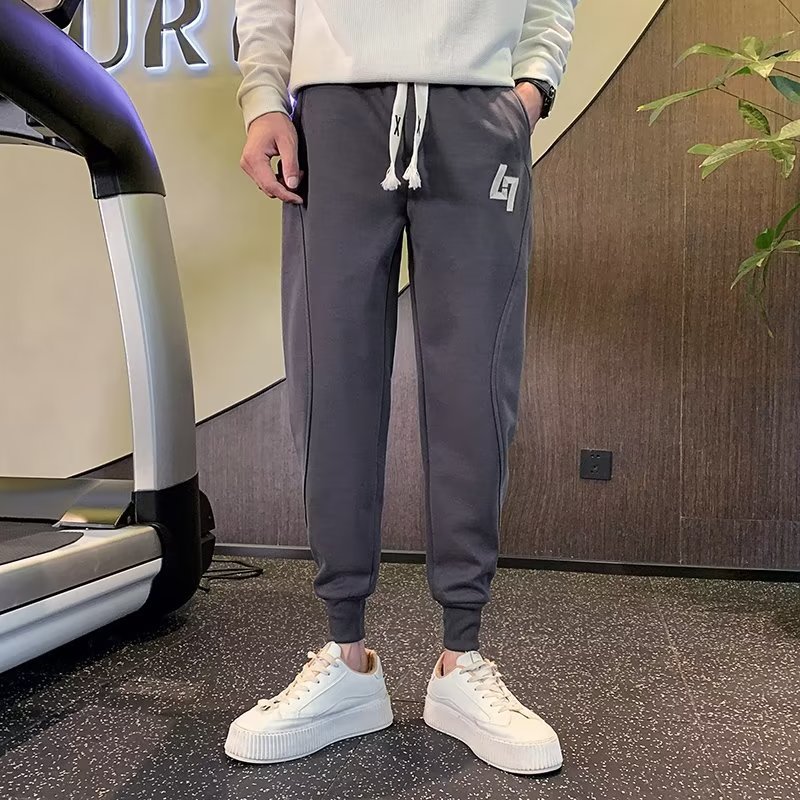 가을 새 남성용 트렌디 한 모든 매치 캐주얼 스키니 팬츠 자수 알파벳 남성용 슬림핏 발 발가락 운동복스토어 가기