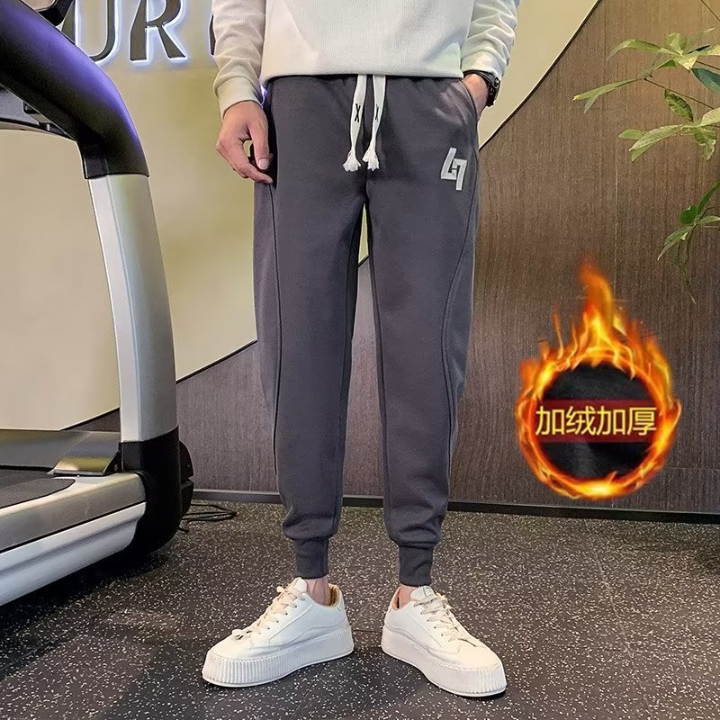가을 새 남성용 트렌디 한 모든 매치 캐주얼 스키니 팬츠 자수 알파벳 남성용 슬림핏 발 발가락 운동복