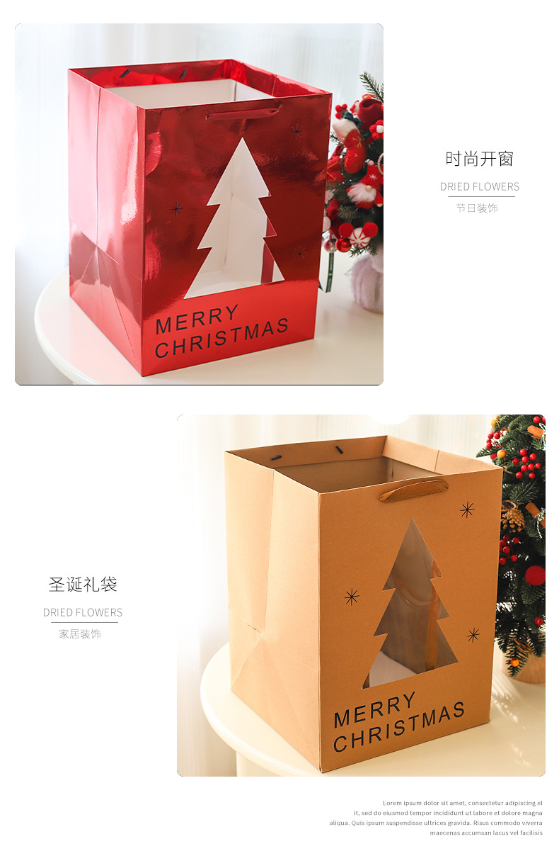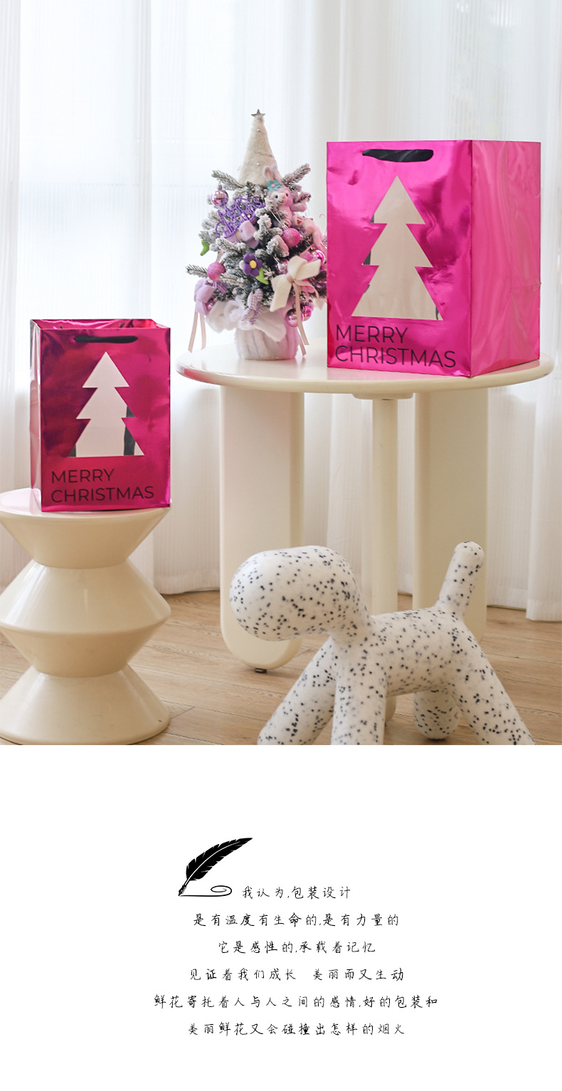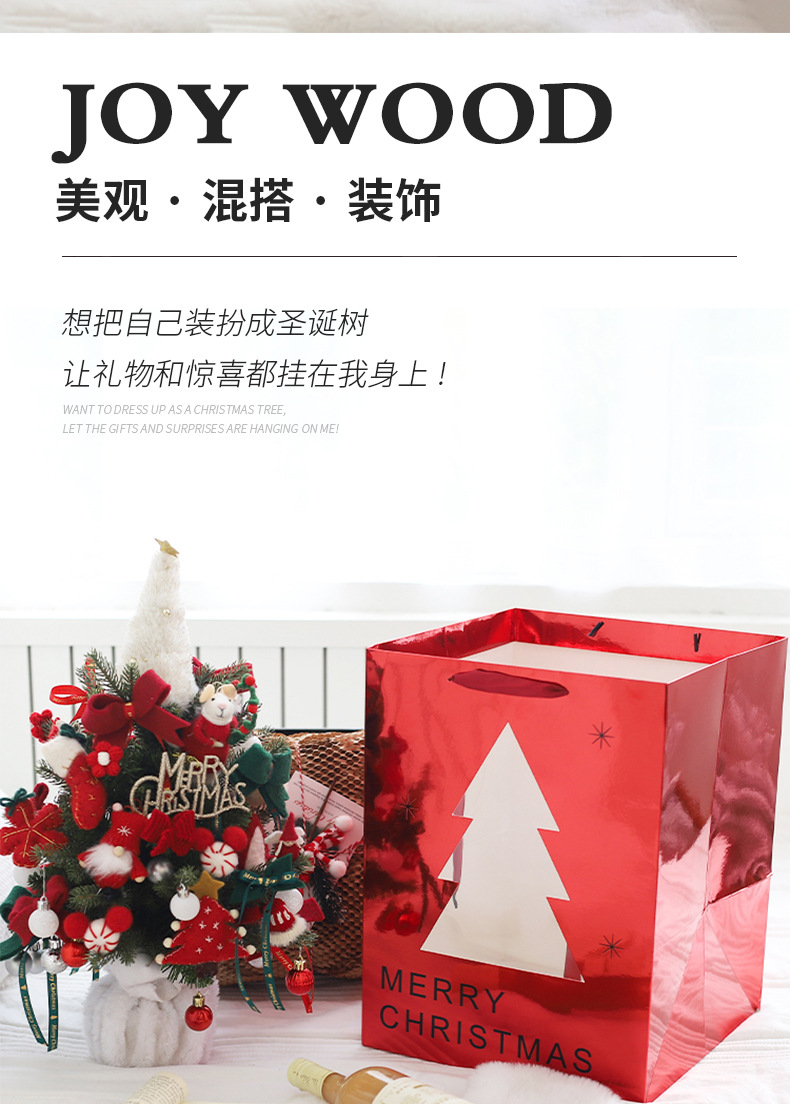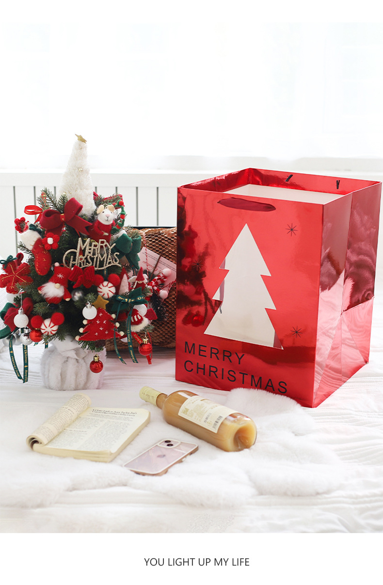 • 패션 크리스마스 트리 창가 가방 로즈 레드 특대형 종이 가방;