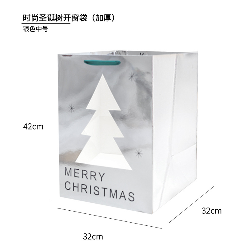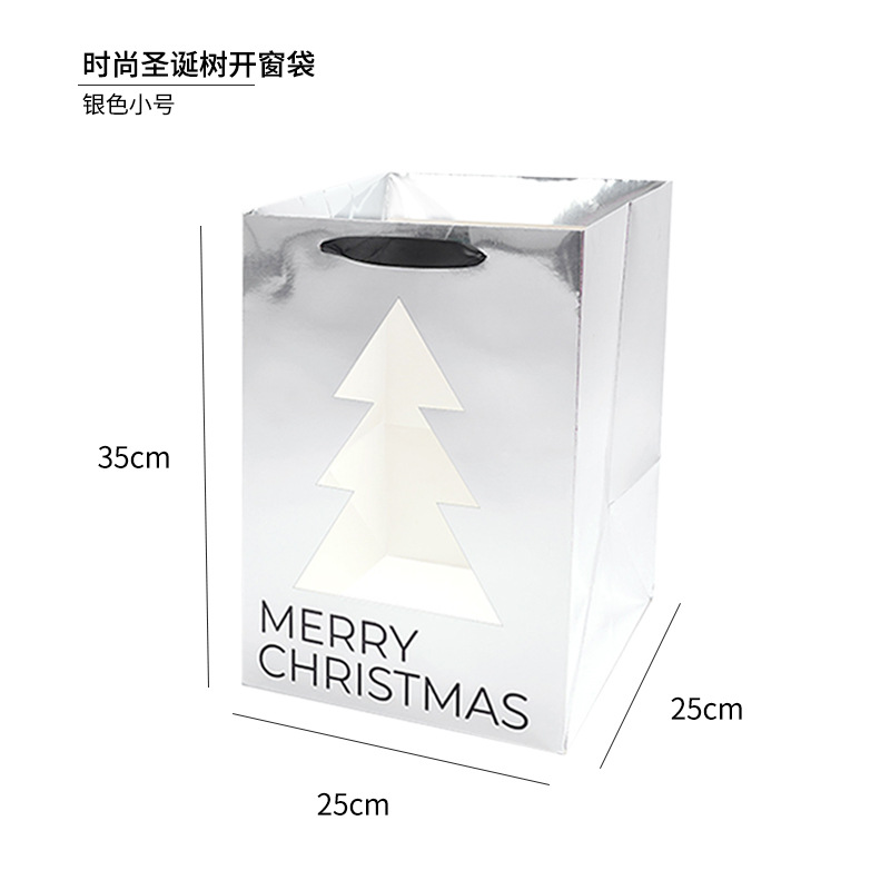• 패션 크리스마스 트리 창 가방 - 은색 작은 두꺼운 종이 가방;