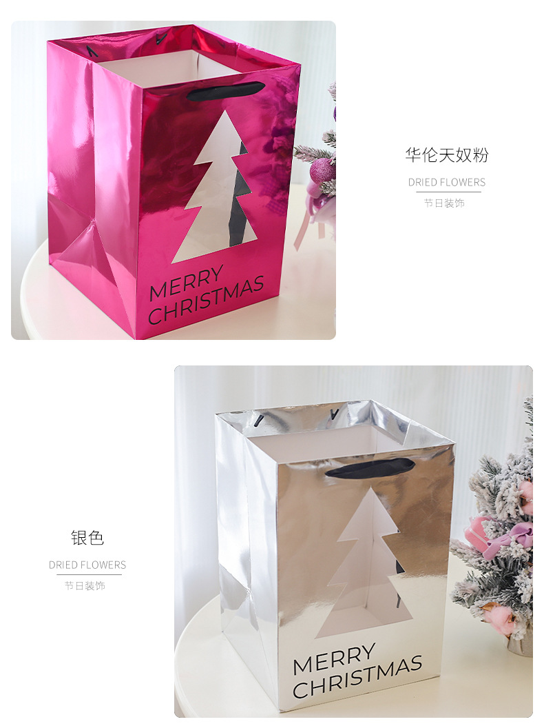 • 세련된 크리스마스 트리 오픈형 쇼핑백 (핫핑크, 소형); 종이 쇼핑백; 쇼핑백