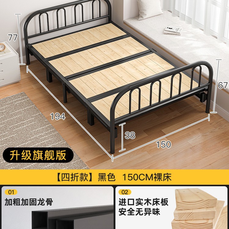 접이식 침대 싱글 가정용 단단한 나무 간단한 침대 렌탈룸 더블 철 침대 강화 성인 낮잠 1.2 m 작은 침대스토어 가기
