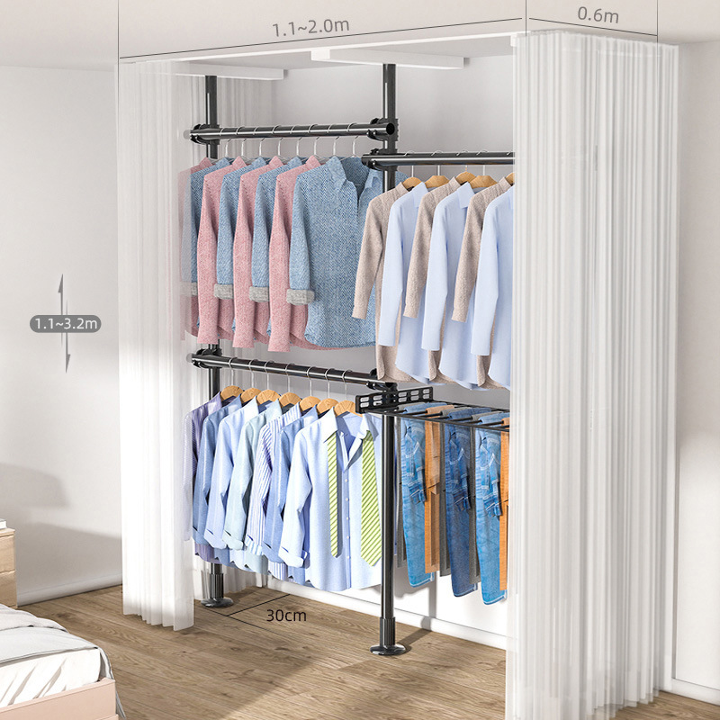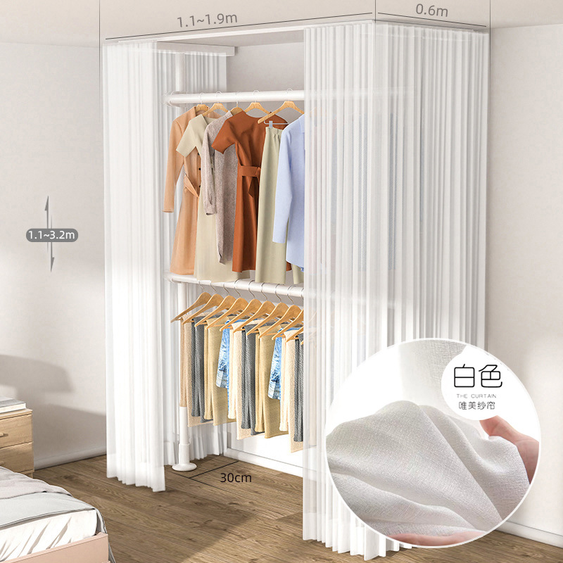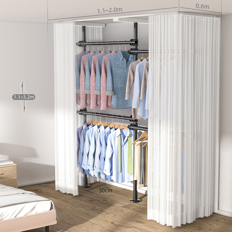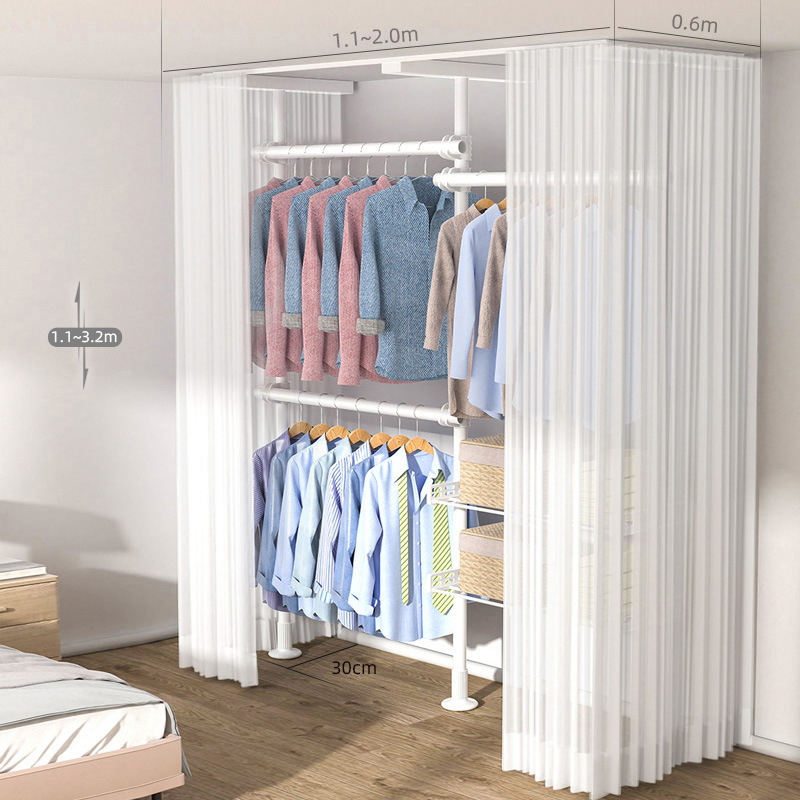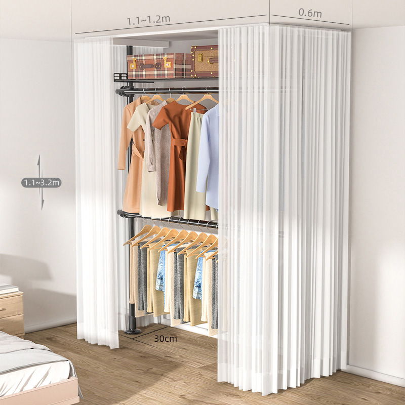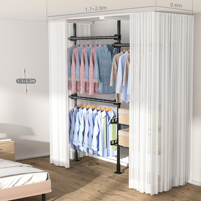 • ☆★검정색 봉 + 흰색 커튼 / 세로 3개, 가로 3개 + 바지걸이 1개, 폭 1.1~ 2.0m에 적합☆★