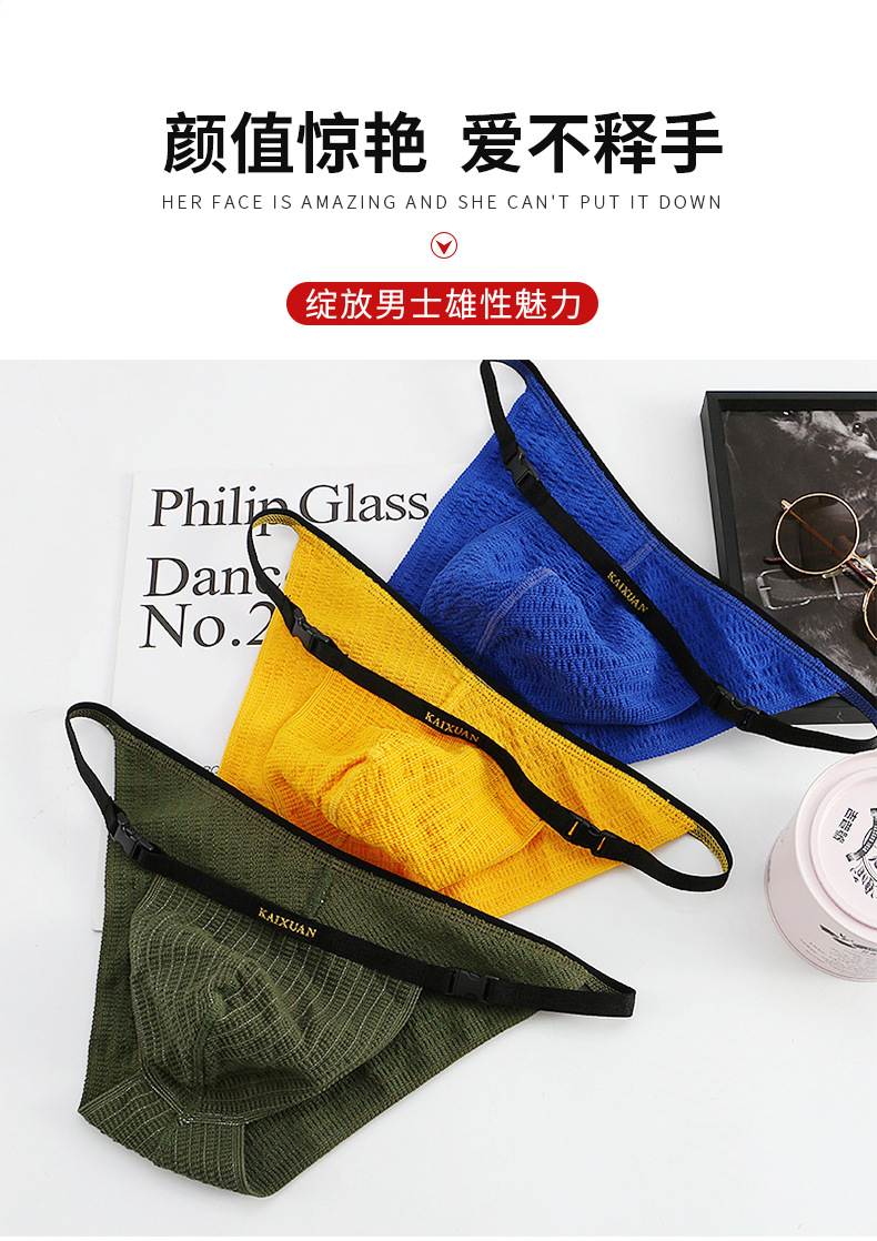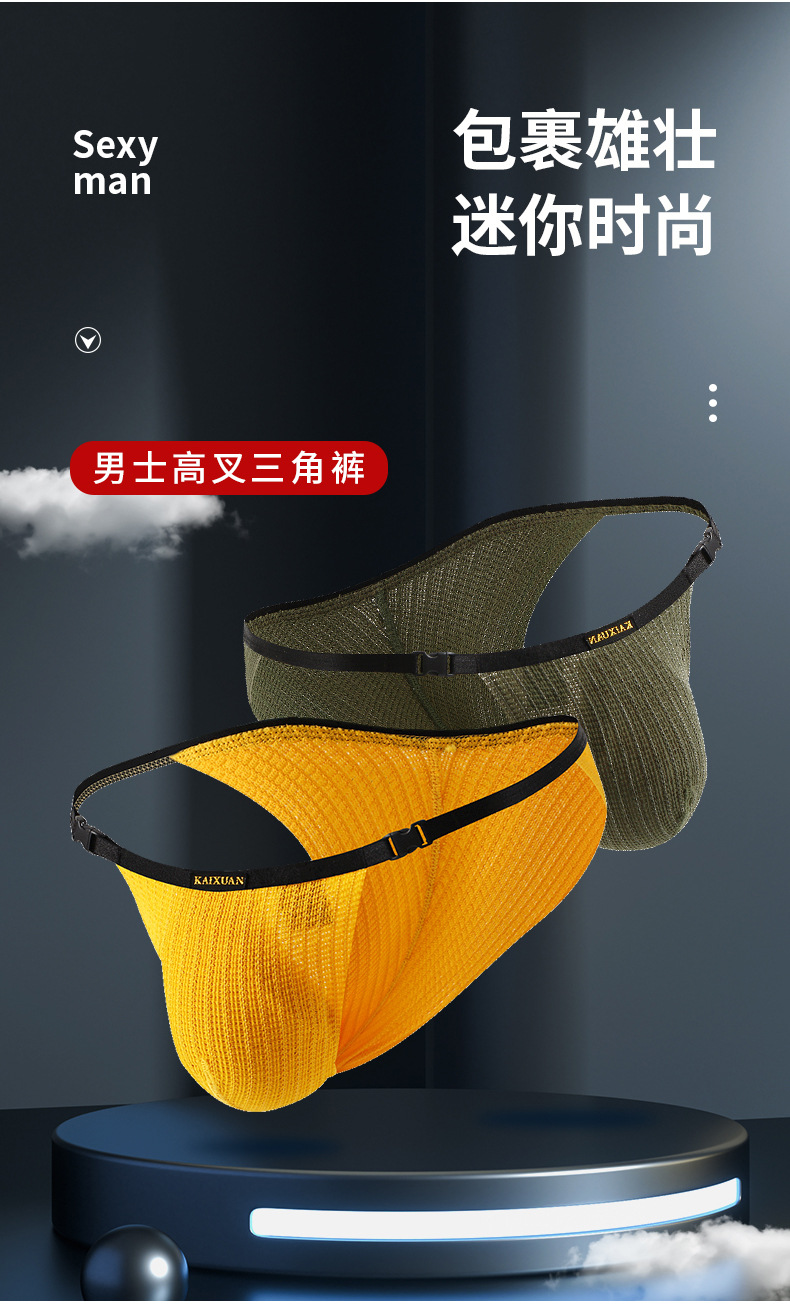남성용 로우 웨이스트 하이 슬릿 삼각팬티, 니트 소재, 통기성, 땀 흡수, 달라붙지 않음, 유럽 및 미국 스타일, 해외 인기 상품스토어 가기