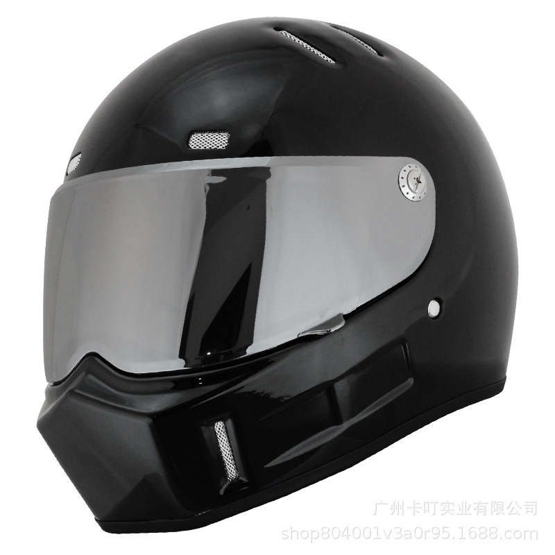 • 실버 도금 렌즈가 달린 밝은 검정색 헬멧