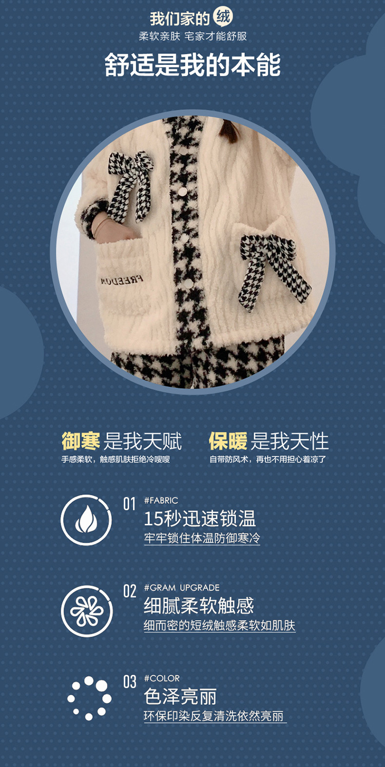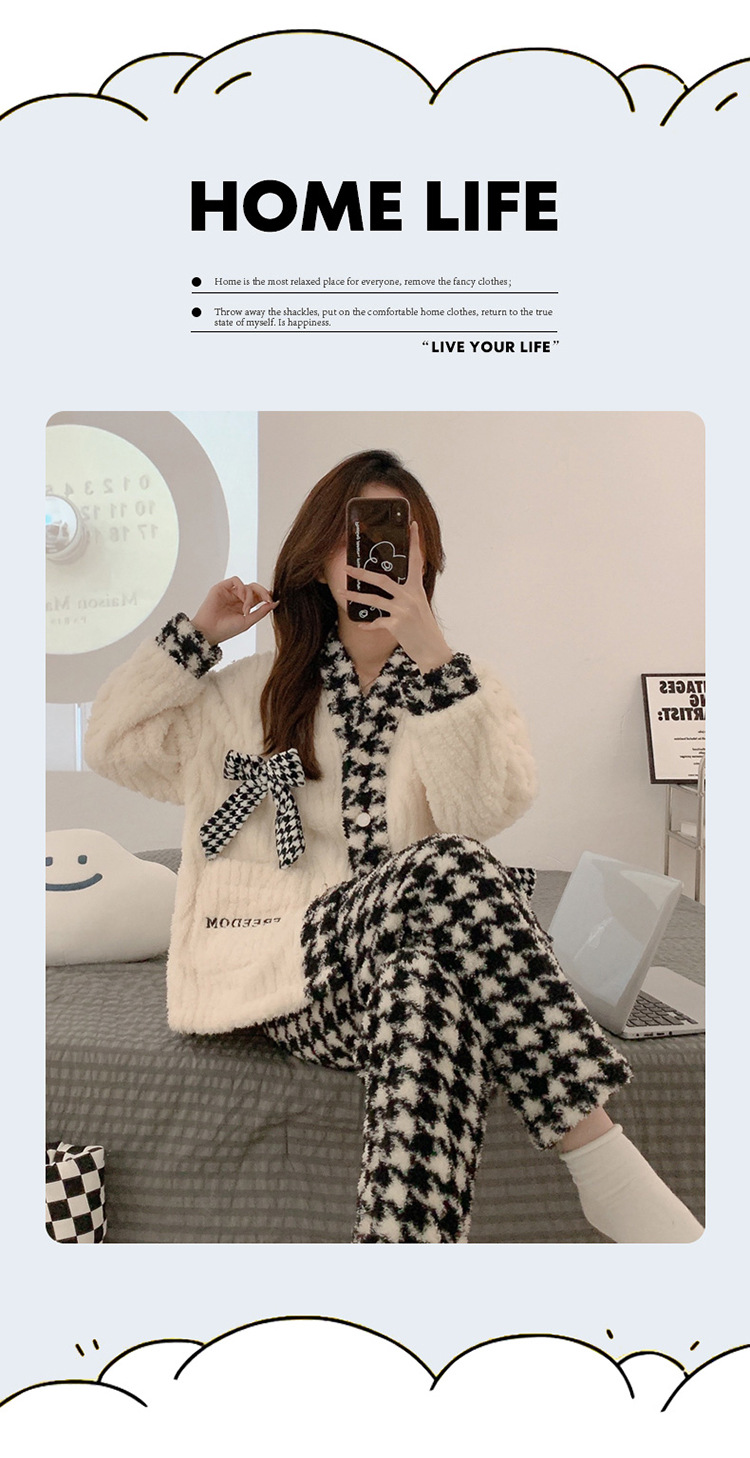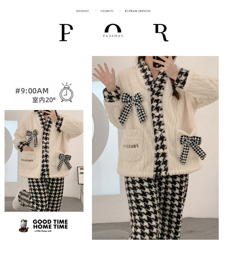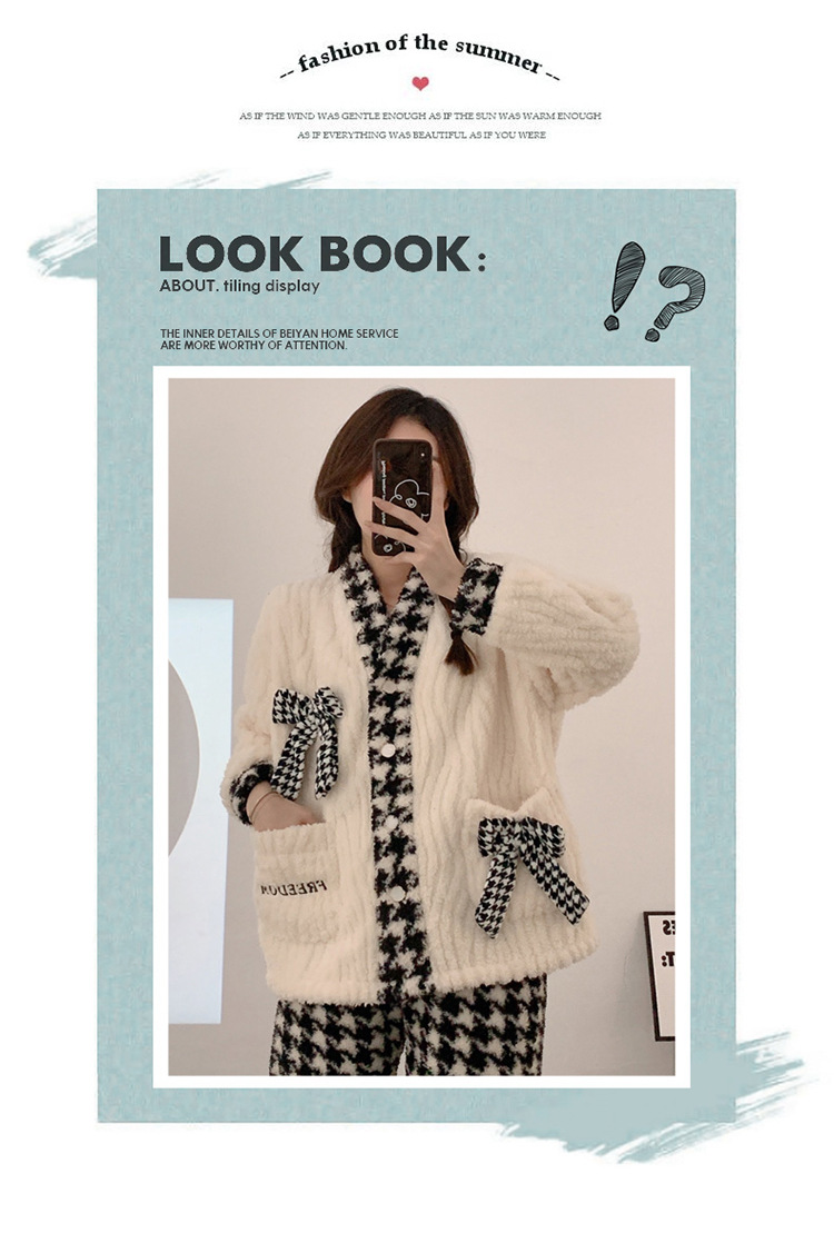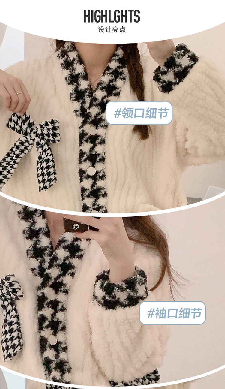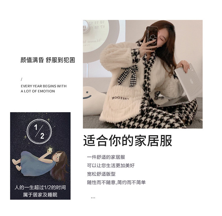 산호 양털 겨울 껍질 패턴 봉제 잠옷 여자의 두꺼운 카디건 달콤한 귀여운 인터넷 인기있는 따뜻한 가정복스토어 가기