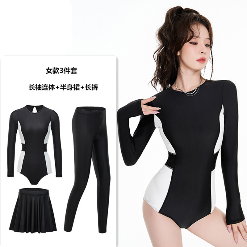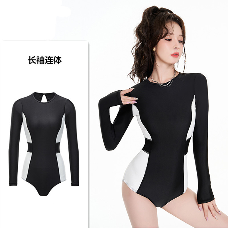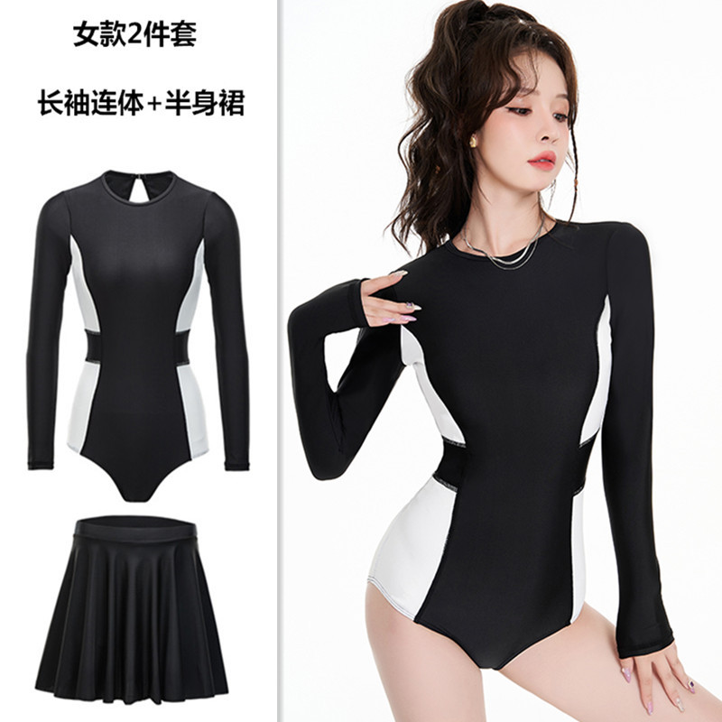 한국 온천 수영복 여성용 신상품 긴팔 자외선 차단제 블랙 바디 슬리밍 배꼽 덮기 프로 스포츠 다이빙 세트스토어 가기