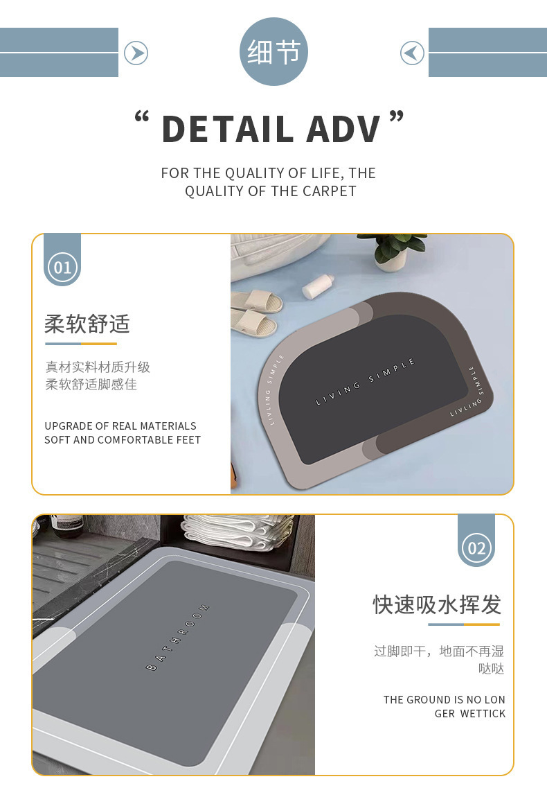 북유럽 욕실 바닥 매트, 강력한 흡수성, 가정용 침실 카펫, 욕실 얼룩 방지 미끄럼 방지 바닥 매트, 거실 주방 도어 매트스토어 가기