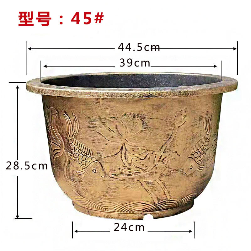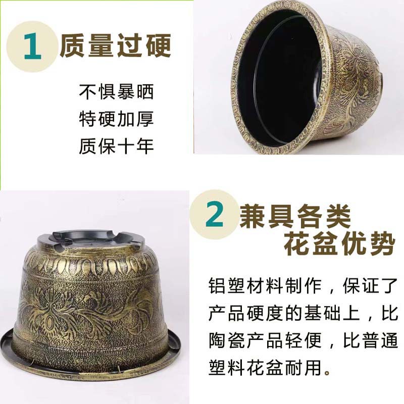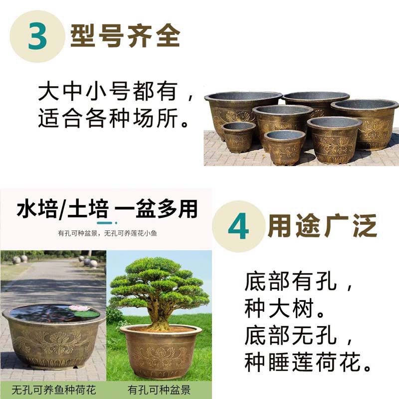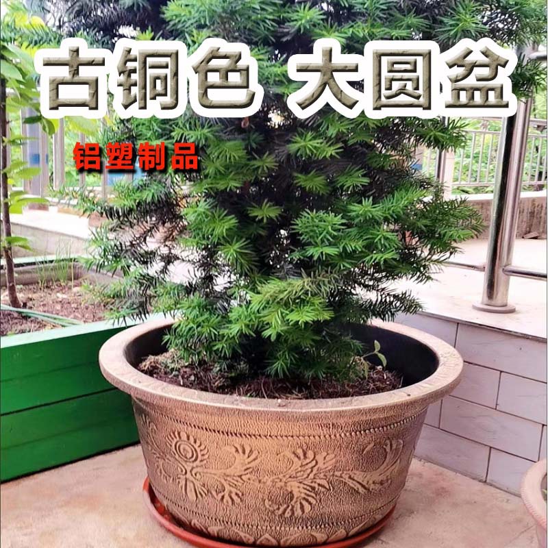 청동 두꺼운 수지 큰 나무를위한 옥외 특별한 화분 구멍이있는 둥근 알루미늄 플라스틱 화분 비 다공성 수경 화분스토어 가기